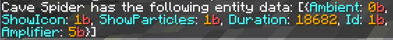 However this seems to not work 100% as intended. While it works for invisible and glowing spiders, spiders with the Speed effect do not copy the effects correctly. The cave spider's nbt data will say it has the speed effect, and particles will show, however the cave spider will not actually exibit any increased speed. I haven't tested with every other effect as its difficult to know exactly if the effect is "working" as all visual cues are satisfied (particles and nbt data).