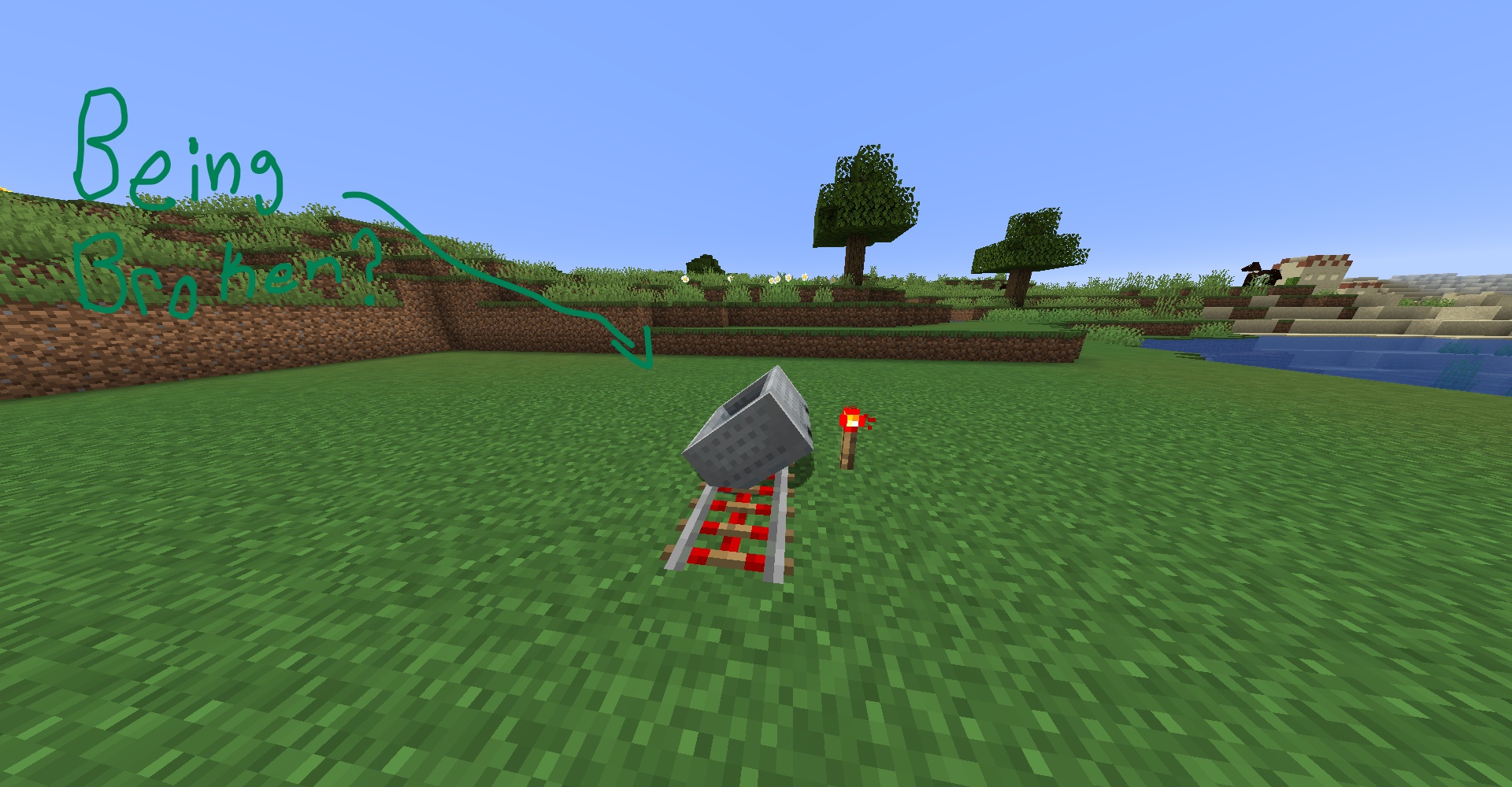 What I expected to happen was that I was going to set the minecart on the activated rail and it would work just fine like normal and I could go back and forth between houses quickly and easily.