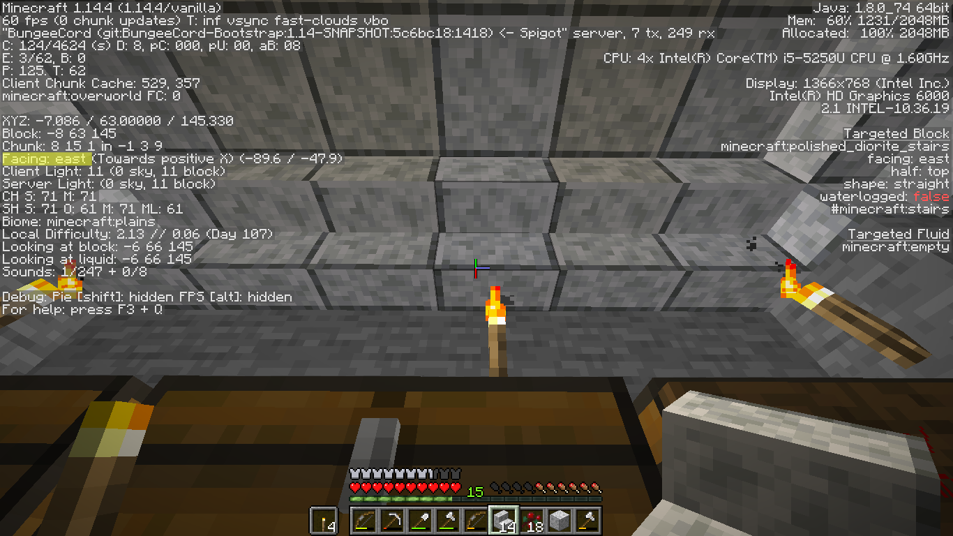 When smooth diorite stairs are placed up side down such that the flat side faces south or east a texture error occurs such that the the darker line at the edge of the stair block switches sides between the panels of the stairs that are facing horizontally or vertically (upper left and bottom right image display the error)