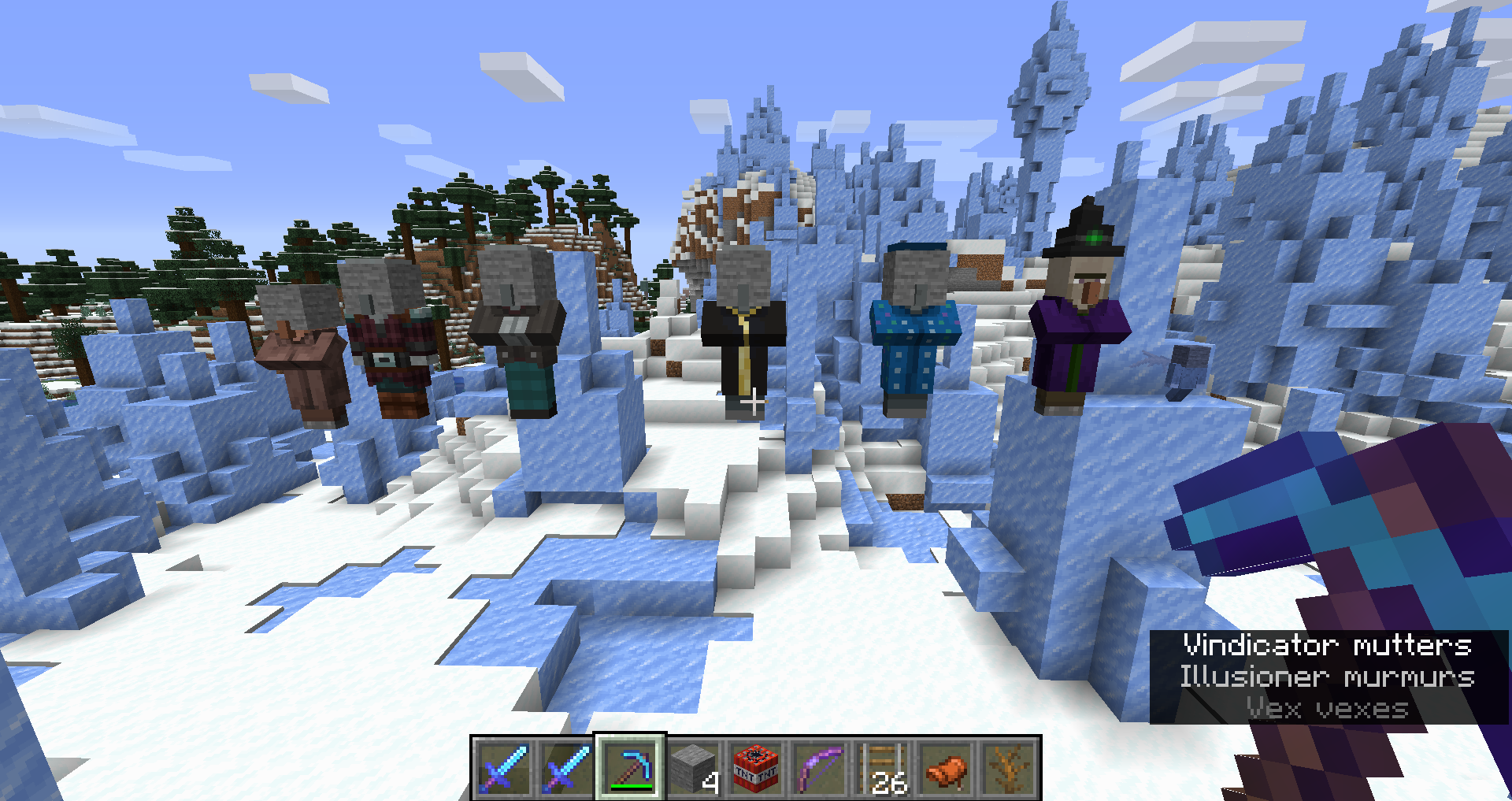 /summon minecraft:vindicator ~ ~ ~ {NoAI:1b,ArmorItems:[{},{},{},{id:stone,Count:1b}]}