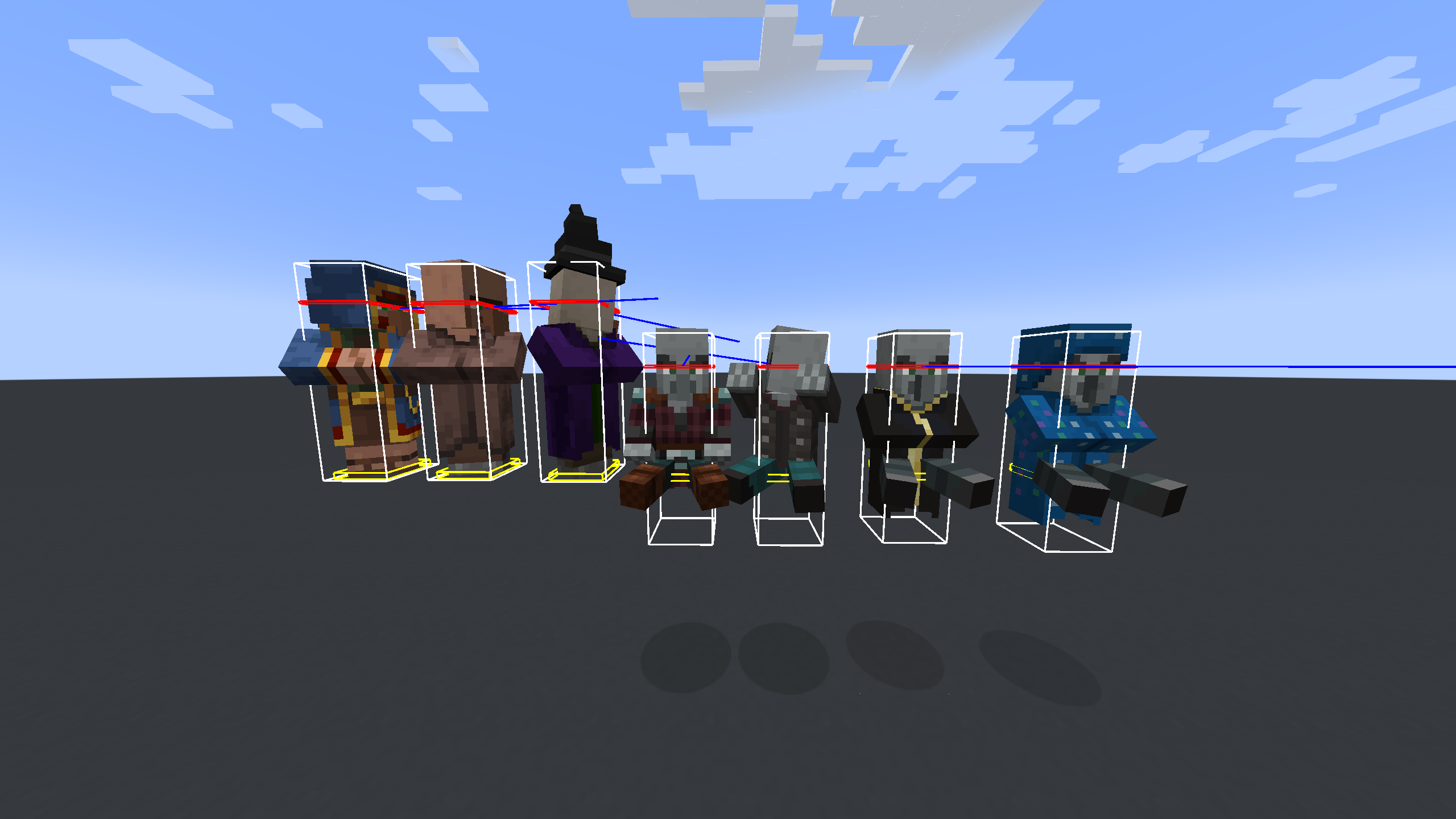 This has been updated to include the most up to date information on the sitting positions, poses, and hitboxes of the various villager type mobs, and may not 100% reflect the original issue when triaged anymore.