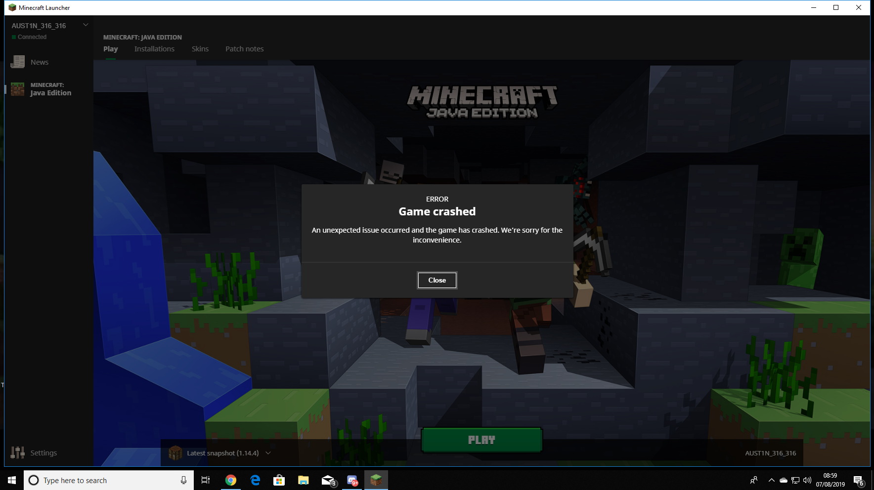 When I press play on the minecraft launcher my pc becomes laggy and then minecraft opens as a white screen and says Minecraft 1.14.4 is not responding and then the screen disappears and then minecraft launcher pops up saying