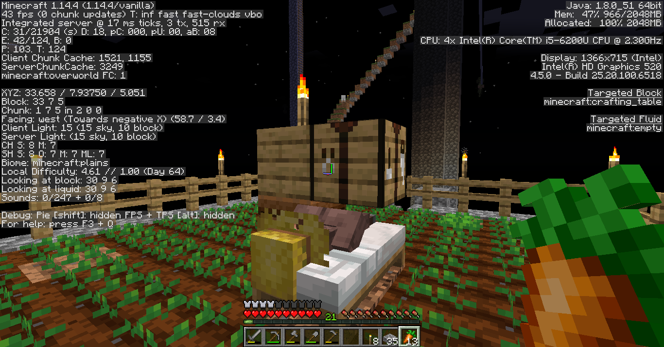 I have a bed with a block above it (crafting table), the villager use the bed in the night (farmer vilager) and i throw carrots at him wich cause it to fall off from the bed.