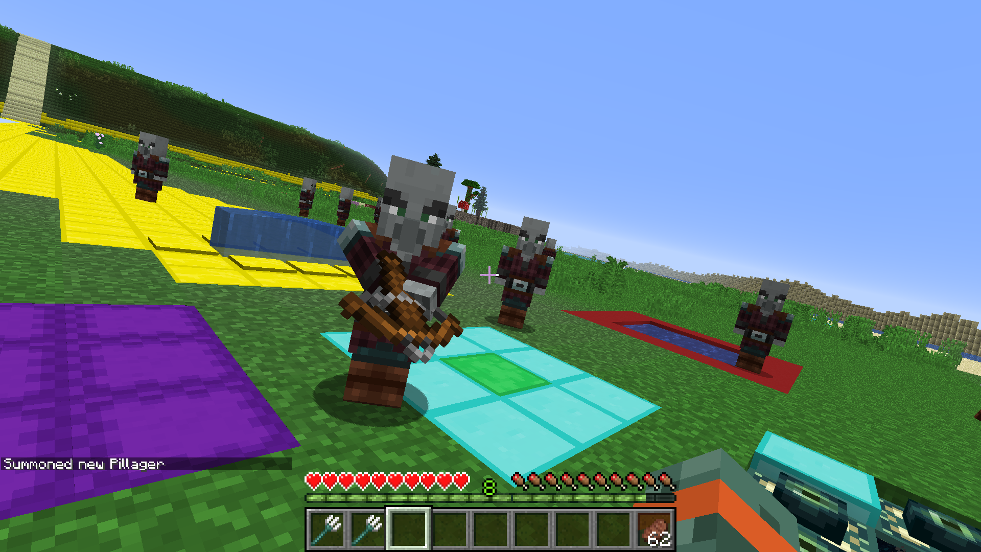 when a pillager is summoned holding anything but a crossbow, they will not do anything but stare at you and wander about. however when one with a crossbow is summoned it fires at you. if this is not intentional i would imagine it should run at you and punch you like skeletons do.