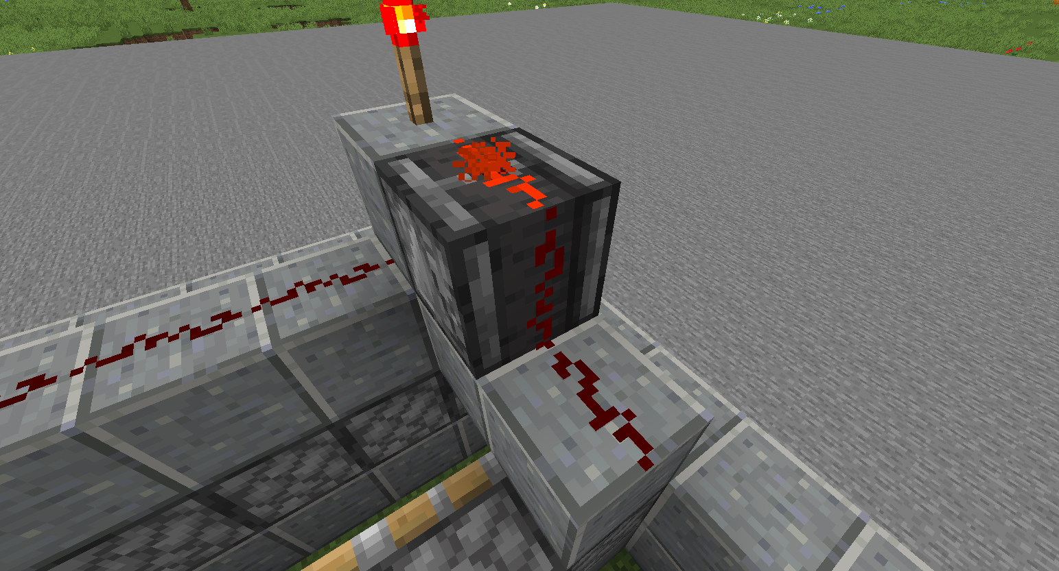 When placing red-stone on top of an observer and then on a lower block beside the observer, the red-stone trail will connect. However, when the red-stone is powered the connection doesn't work and the lower section isn't powered. This happens only with the observer block and the orientation of the block doesn't make any difference. Red-stone signals can travel up the block, but I think that is just because the block itself it considered powered. Other blocks such as the dispenser and dropper do not have this problem, however glass and glow-stone also have this problem.