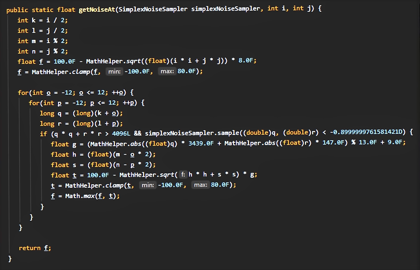 When t is odd, it predicts the location where a void begins. When t is even, it predicts the location where normal terrain generation resumes.