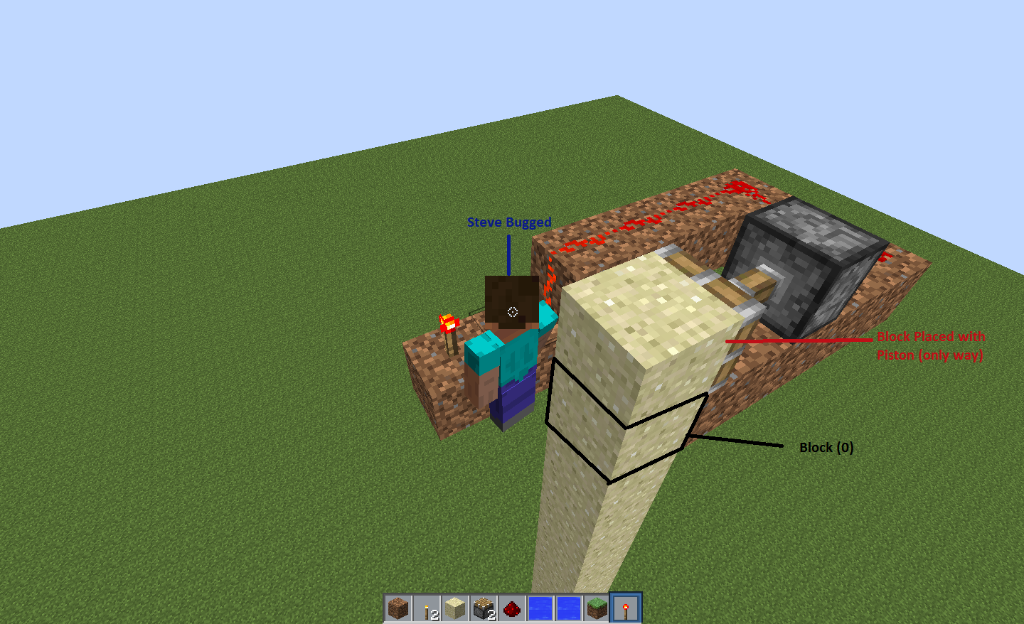 When Column (A) start with a torch, then above is a solid block and above it is a big column of a block/s afected by gravity, yo may not destroy Solid block,