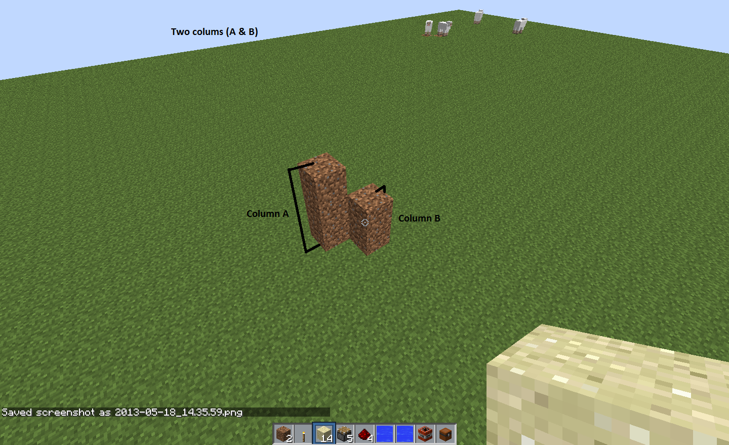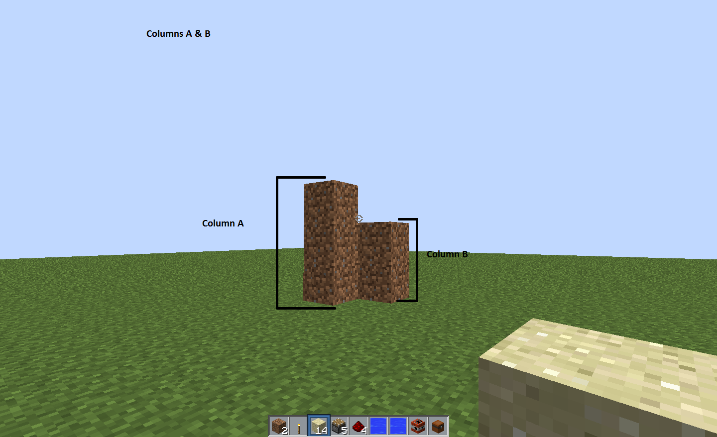 unless you jump and right click to place a block above Column (A) or Column (B). when digging down in Column (B), you reach the limit when you go