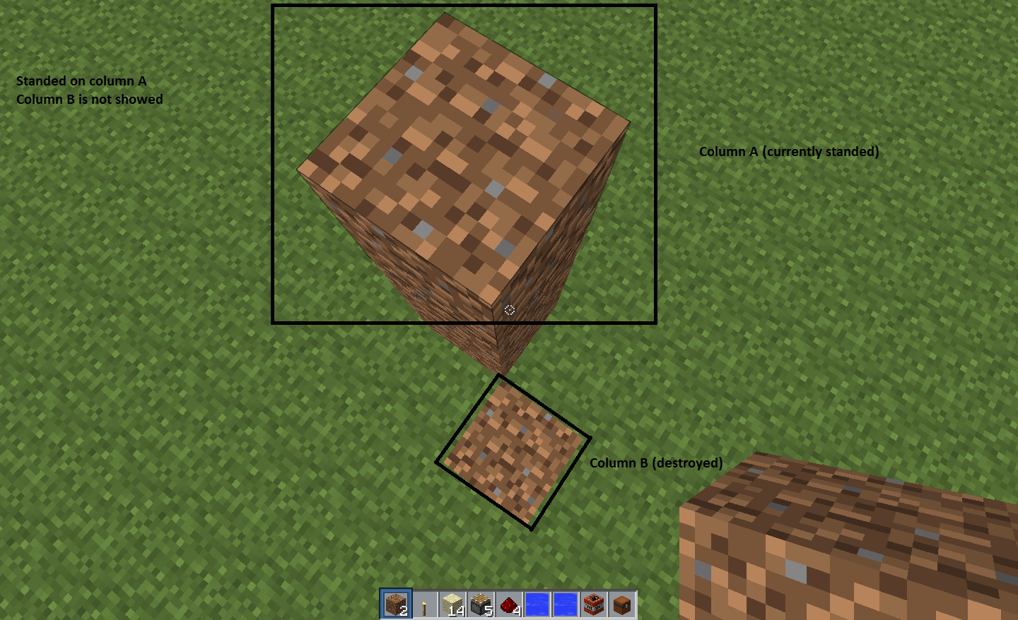 bug will keep even if you completely destroy all colums without mooving in X/Z angles. Bug disappear when mooving in X/Z angles. when column A is