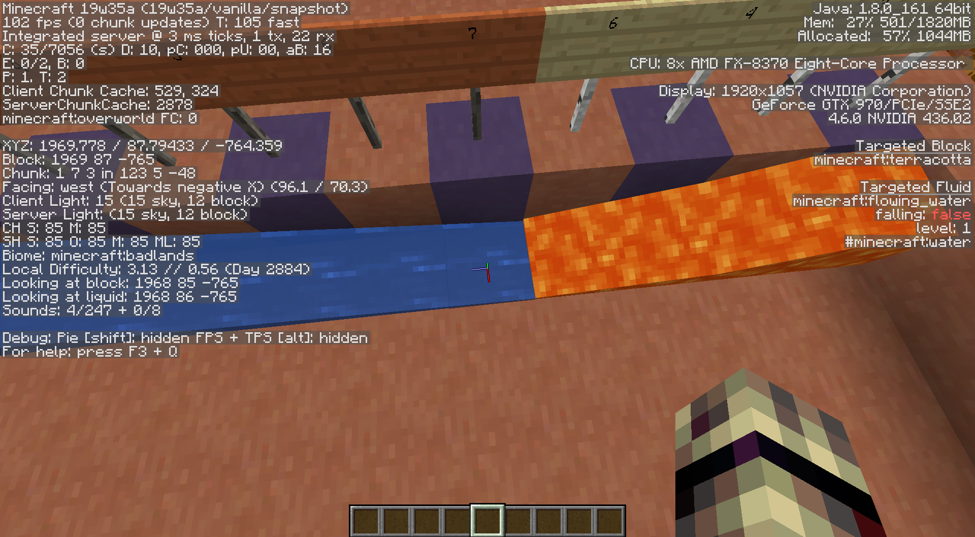 If done correctly, this command should fail. If identified through the debug ui however, the information correctly shows that the water level is in fact 7. Now repeat the steps listed above but stand at the last water block flowing out of the source. If done correctly, the command should succeed.