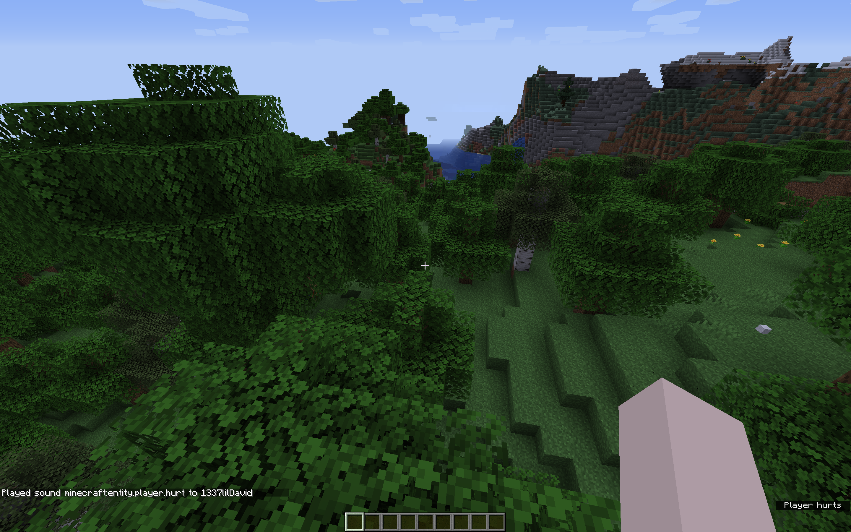 The default hurt sound effect plays instead, and the subtitle reading "Player hurts" appears.