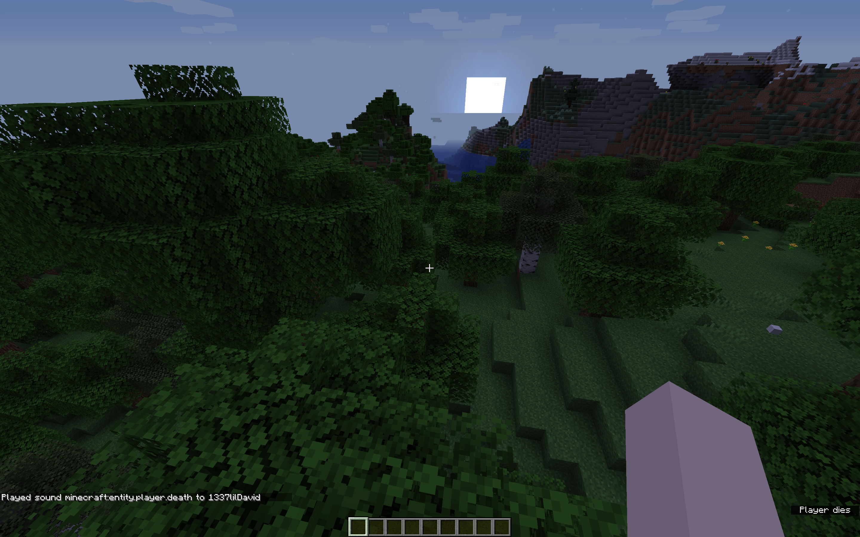 Upon dying (e.g. using the /kill command), the custom sound effect from the resource pack is played, and the subtitle "Player dies" appears with subtitles turned on.