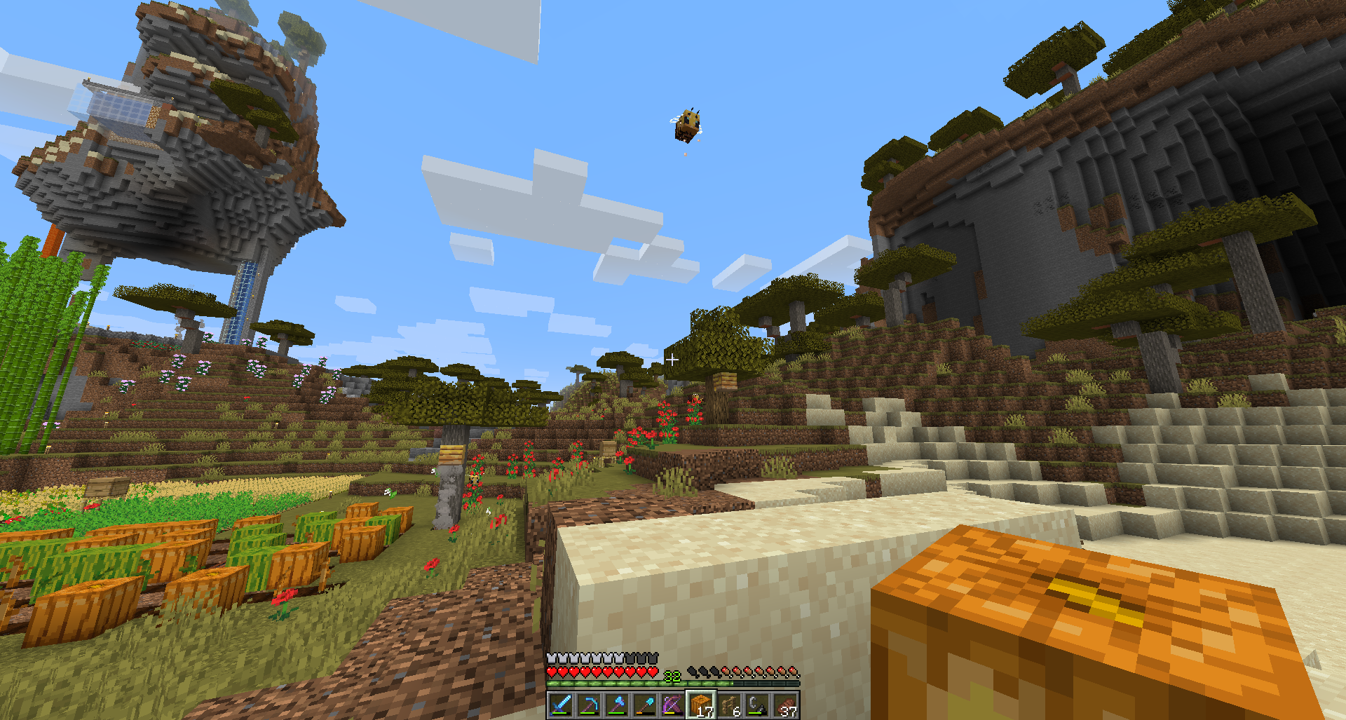 I was very happy when the bees were added to Minecraft. I went to a new snapshot and started looking for bees. I flew around the world for a very long time and finally found a hive with bees. I began to watch how they fly and what they do. But at one point, I noticed that the bee was frozen in the air and was not moving.