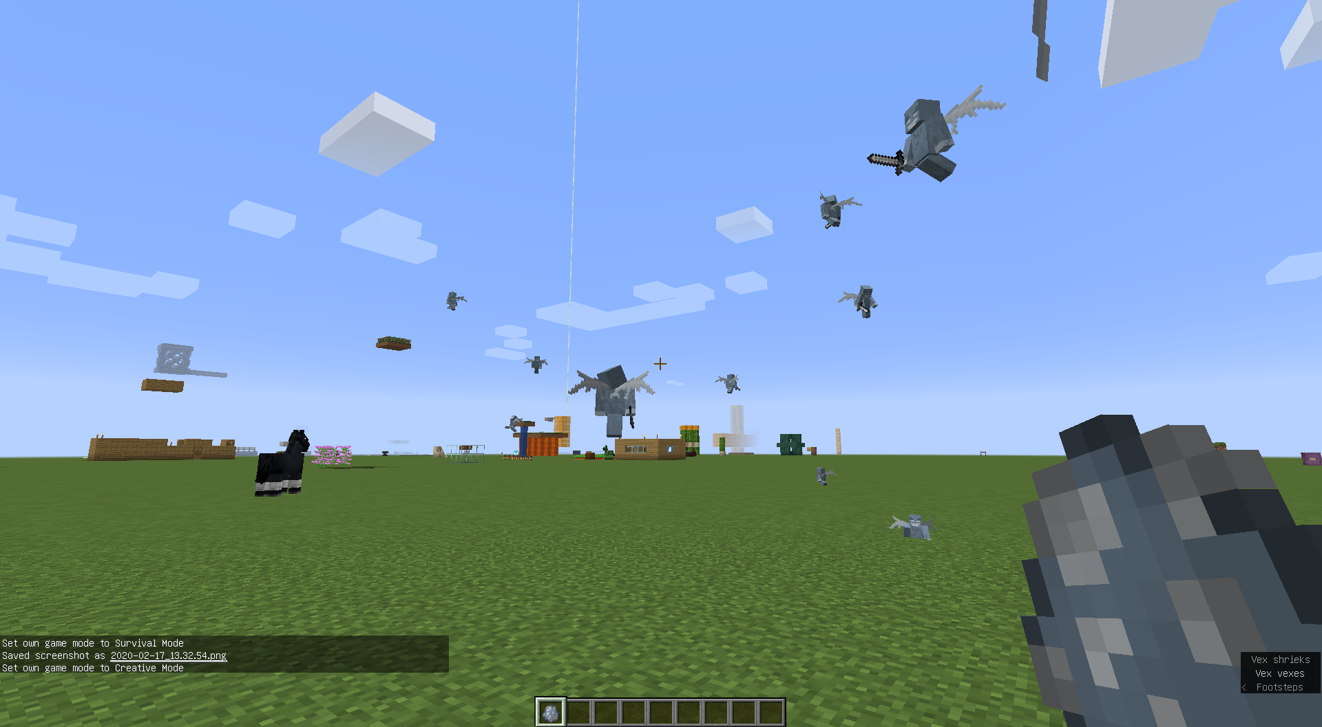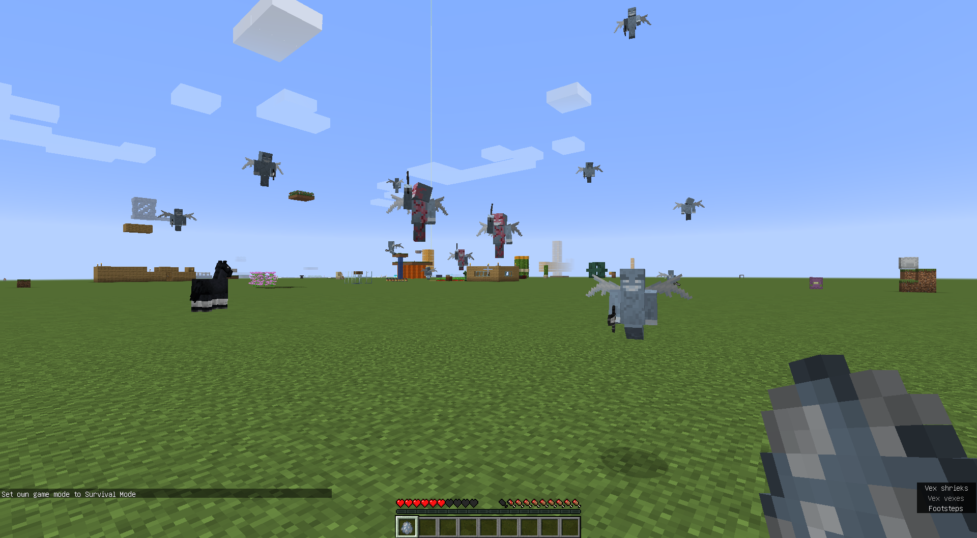 Do F3 + N to go to creative and randomly, a vex charges towards you.