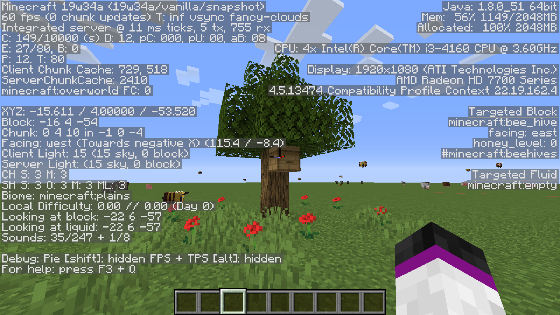 Bees absolutely do not create honey in the "Bee hive". I tried put it on a tree and on the ground, but the error does not disappear. No errors happen with the "Bee nest" : the level of honey is increasing.