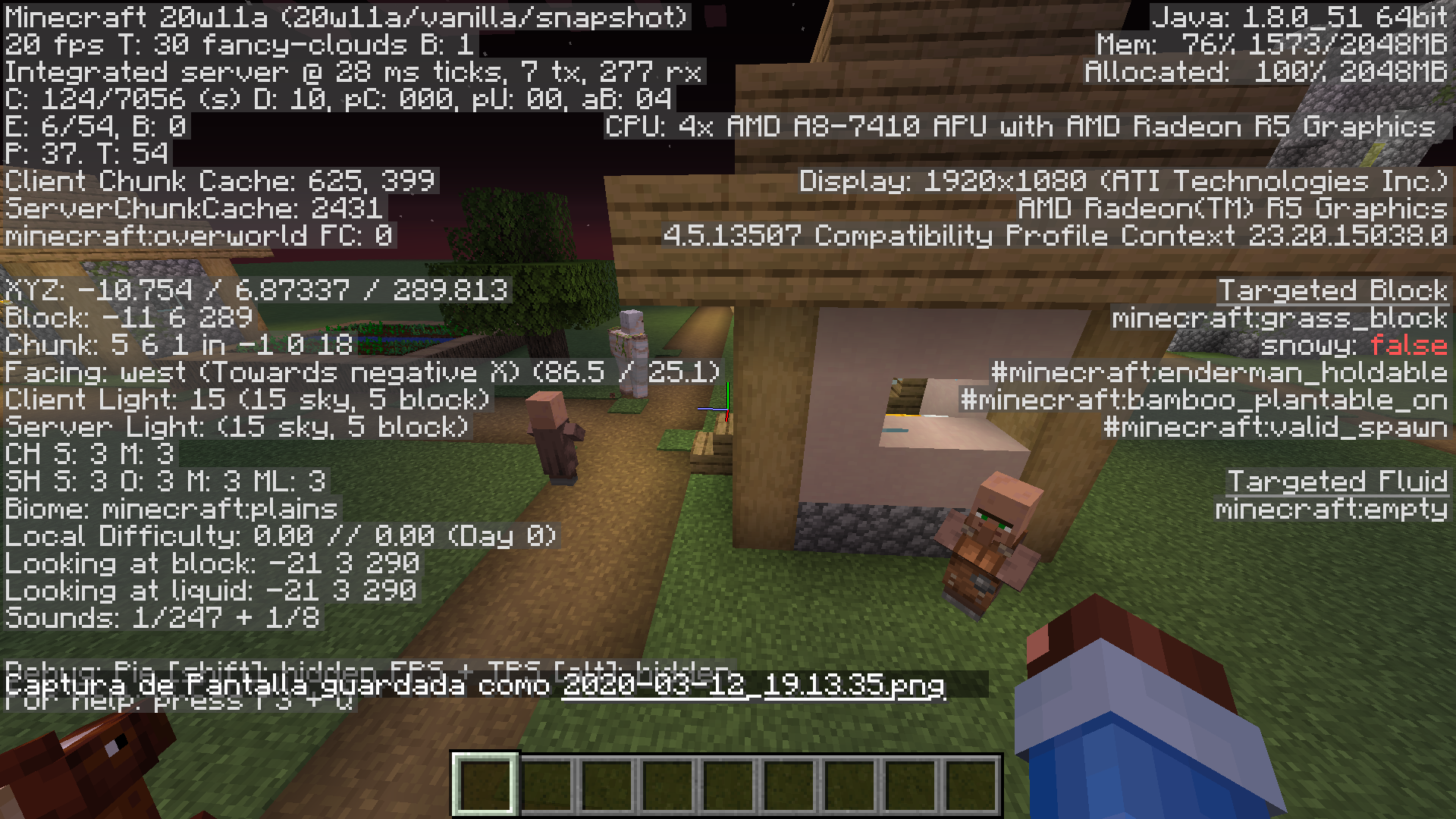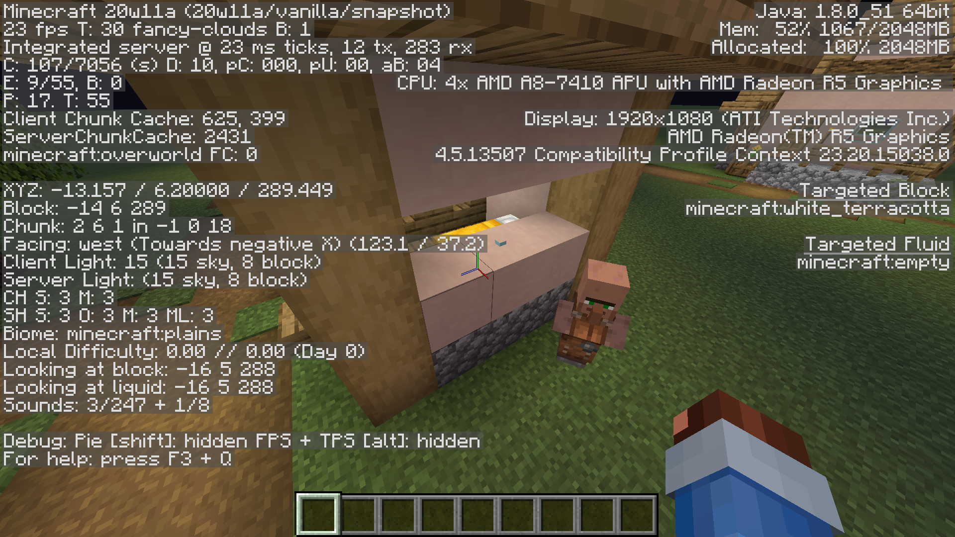 Here are 2 Screenshots from the Superflat World I used for this report back in 1.14.4, this is in 20w19a.