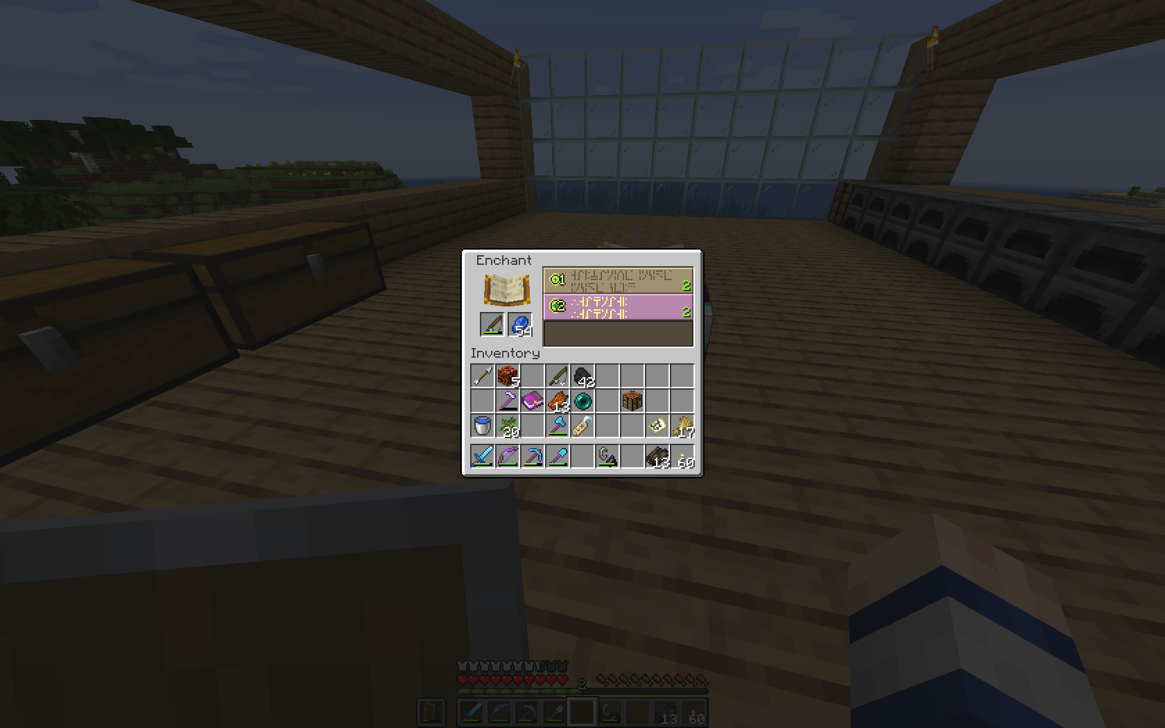 When hovering mouse above enchantment choices, no hints (eg: luck of the sea I...) were shown, when clicking, enchantment does not work at all, failing to enchant the rod.