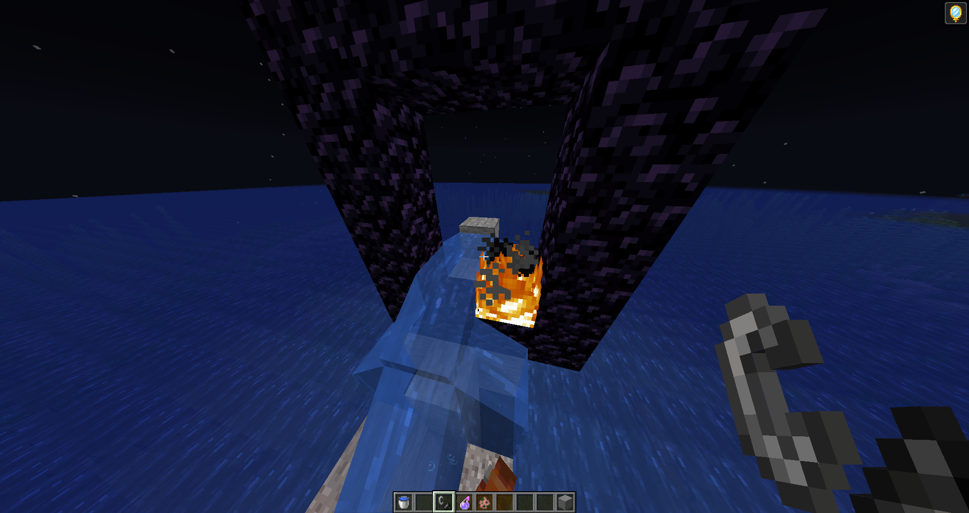 If you build a netportal and you have a block in the netportal and then try to light the portal, this will not work even if you remove the block and the fire in the netportal burns in all specified versions. This also applies to flowing water and lava.