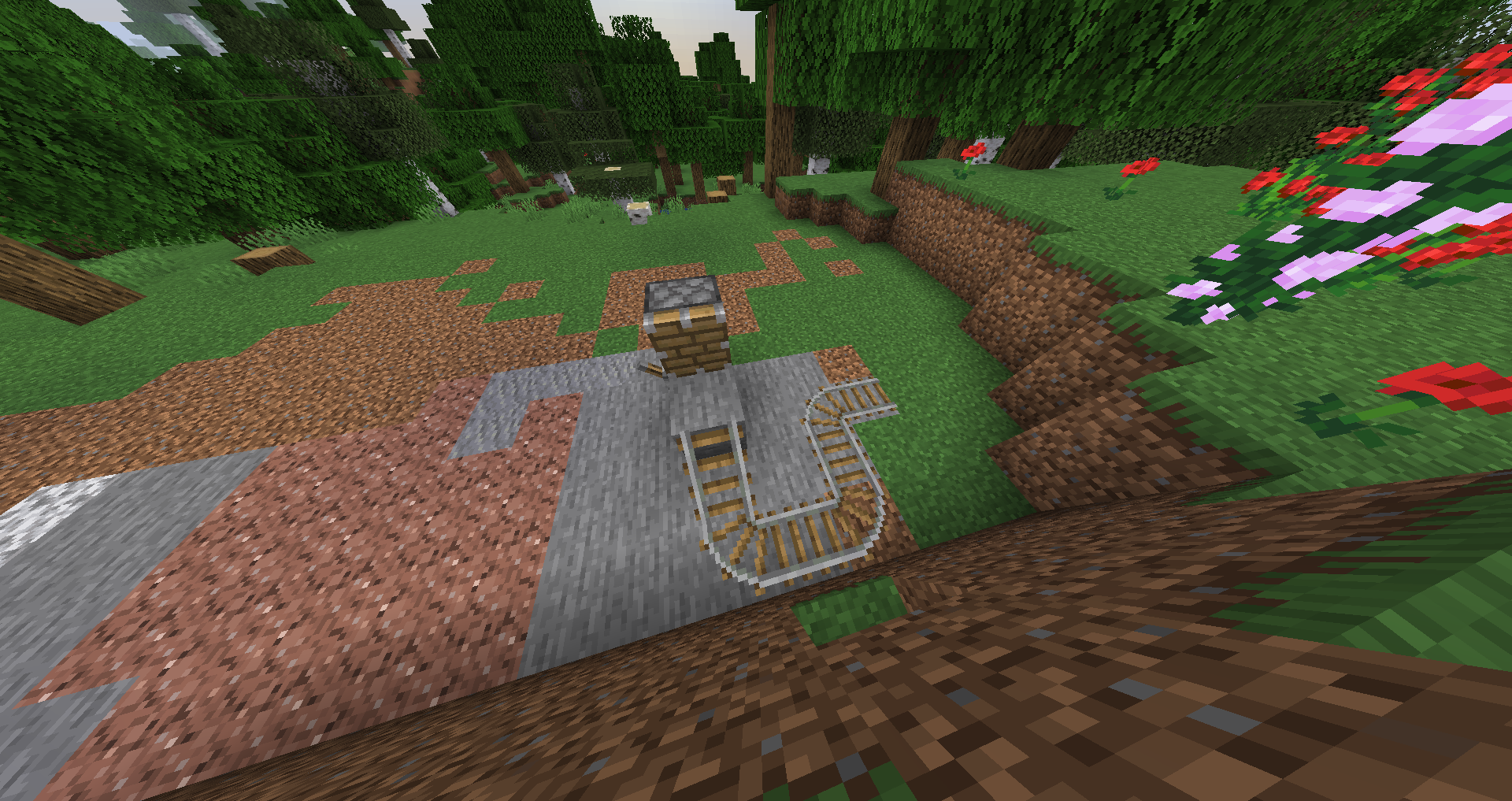If you activate a piston with one rail in front of it (all) and a block in front of it an offset down another rail places the piston activated the bottom rail stays up on the block although no other rail is connected to it.