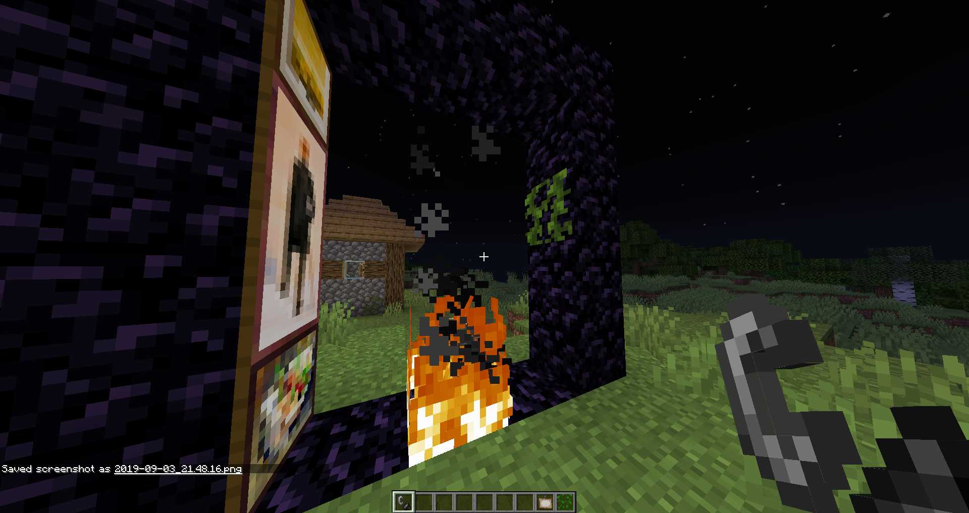 Try to put a painting in the nether portal.