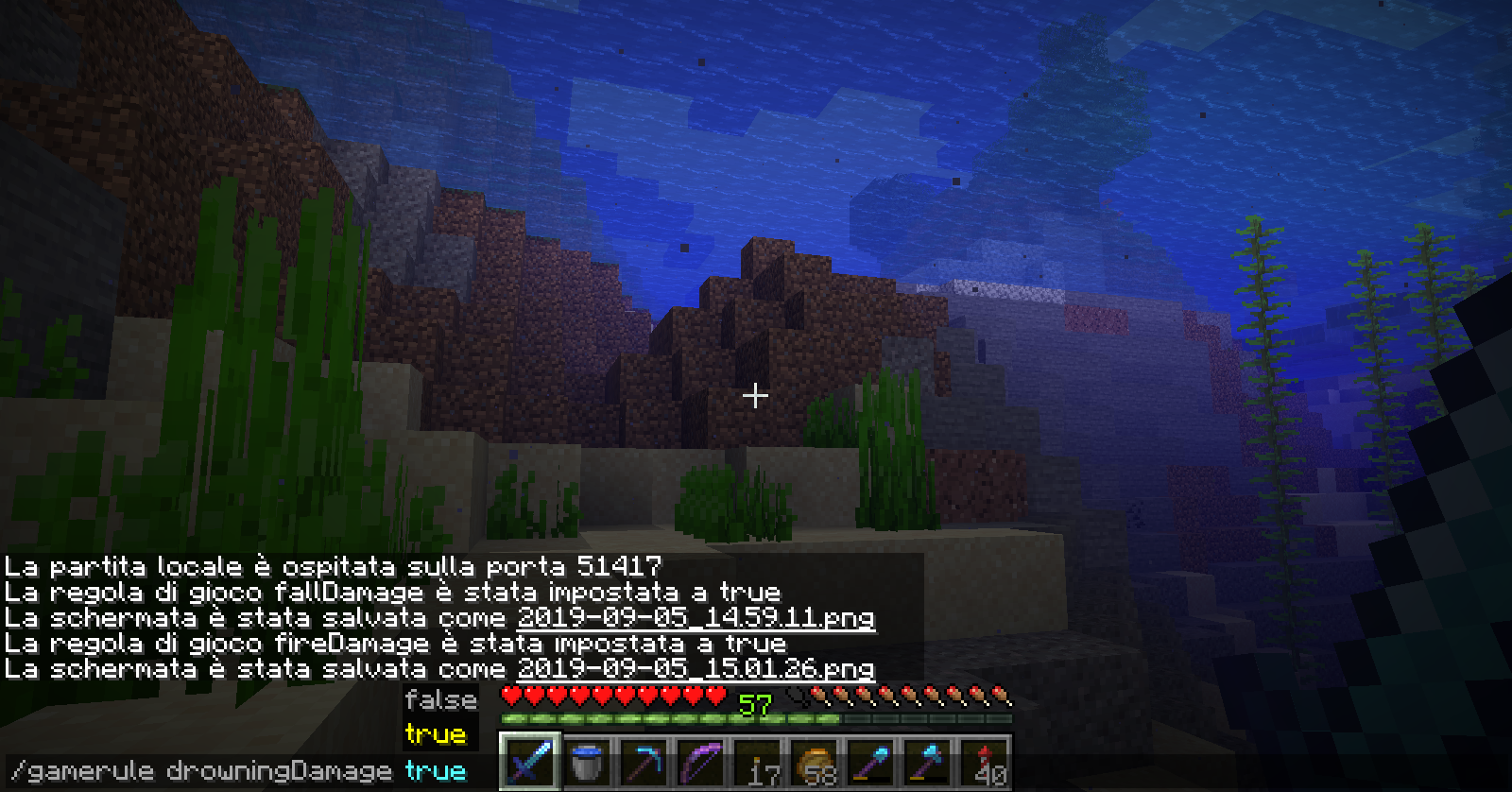 /gamerule doInsomnia trueI opened my existing world, and there was no fall damage, no drowning damage etc.