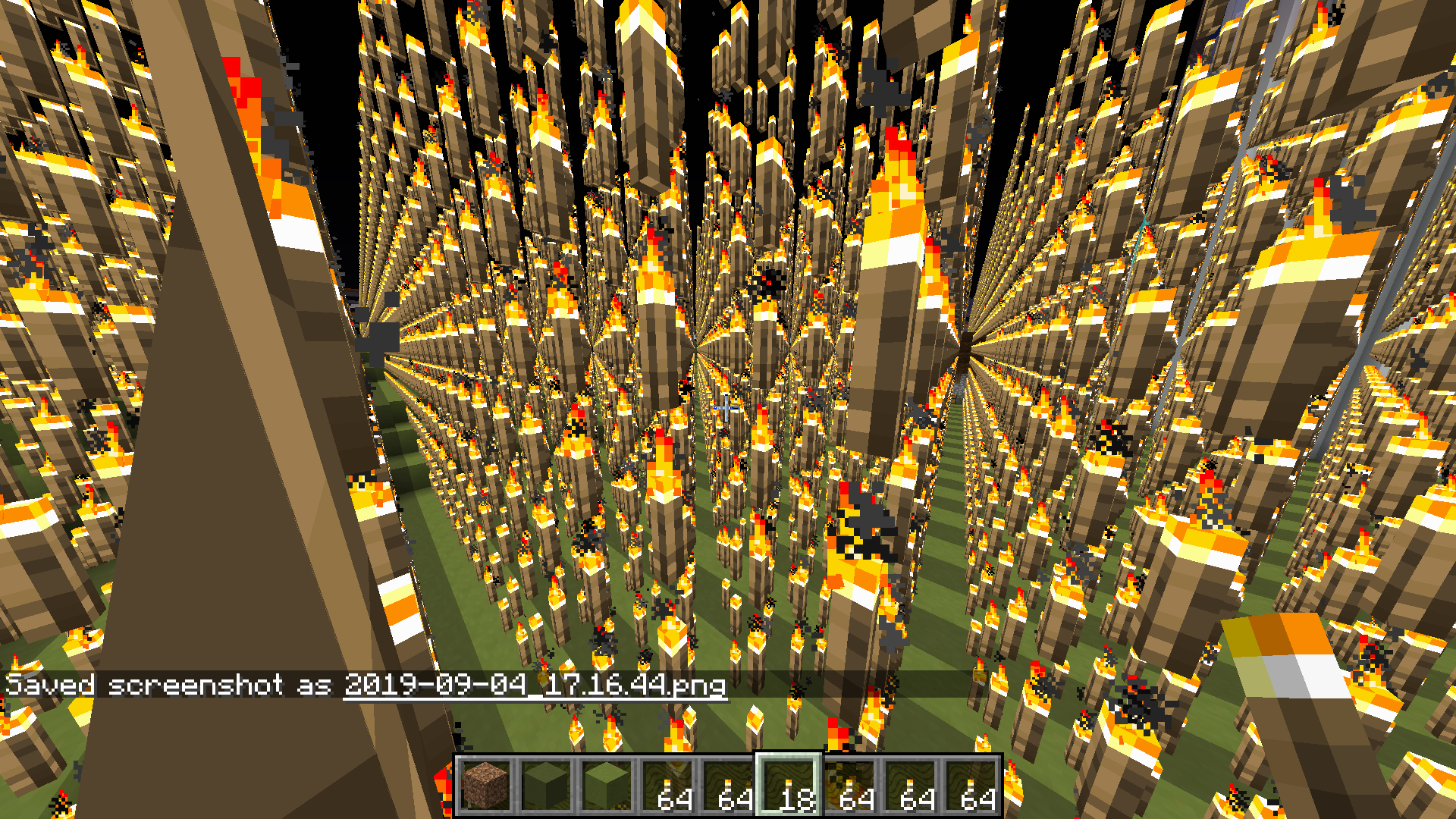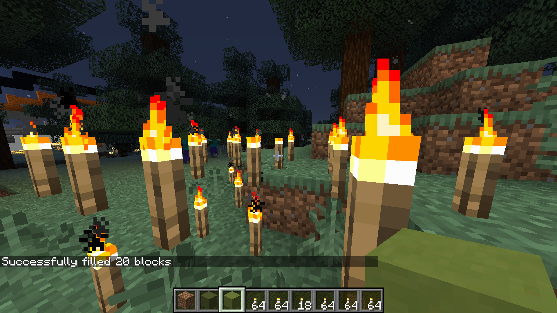 Torches can be placed on top of each other with the /fill command, creating a laggy and confusing area