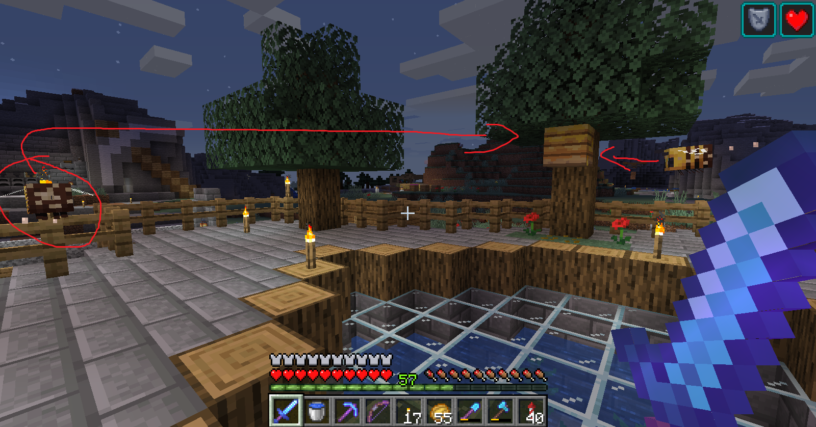the bees after being blocked near the fences do not try to change direction or to fly higher to go beyond the obstacle, even if pushed in other directions they tend to return towards the fence, not even returning to their hive after a while. It occurs best with diagonally connected fences
