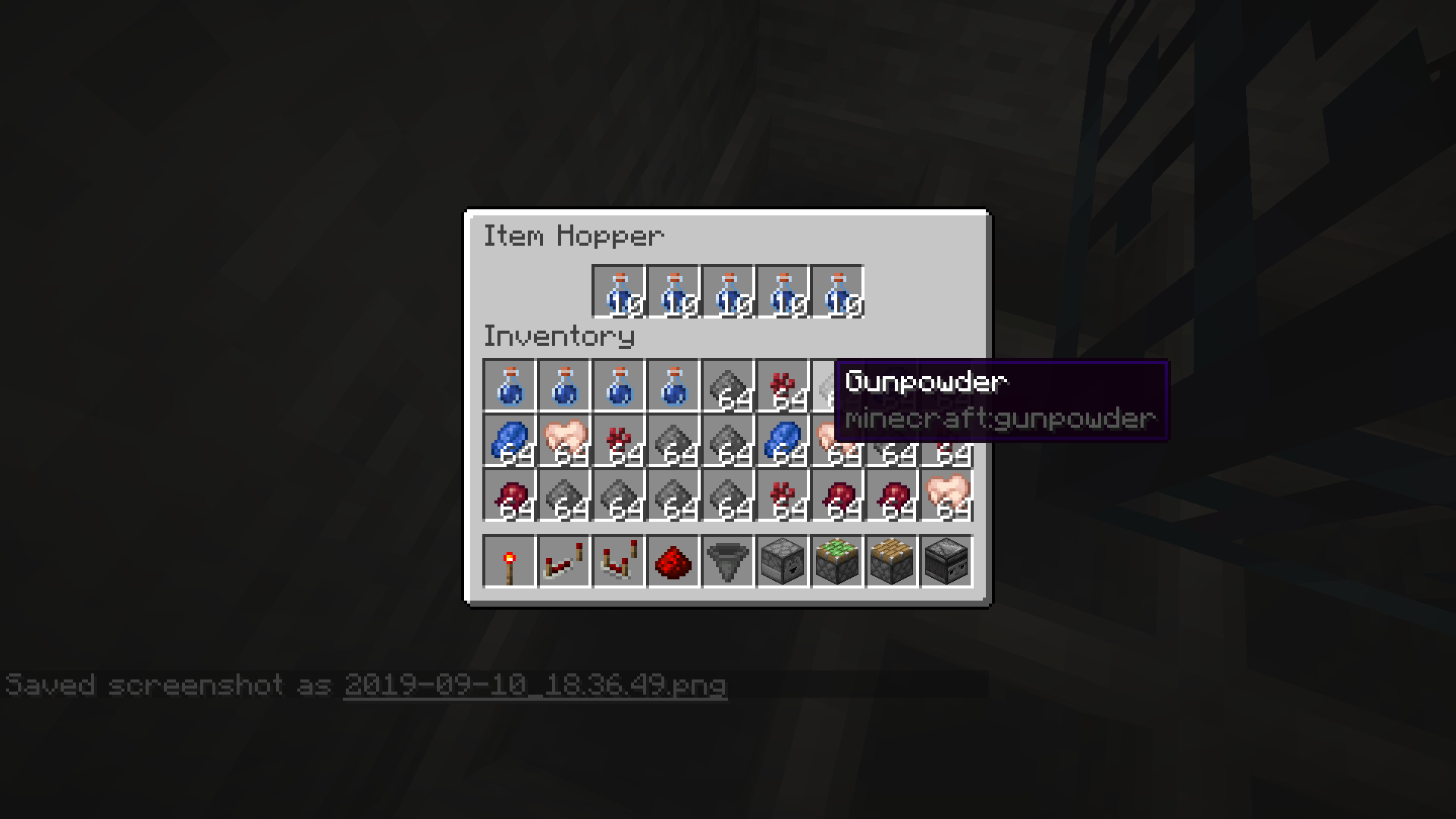 I've made a custom monster spawner, which spawns these bottles and when I looked into the hoppers, I was surprised.
