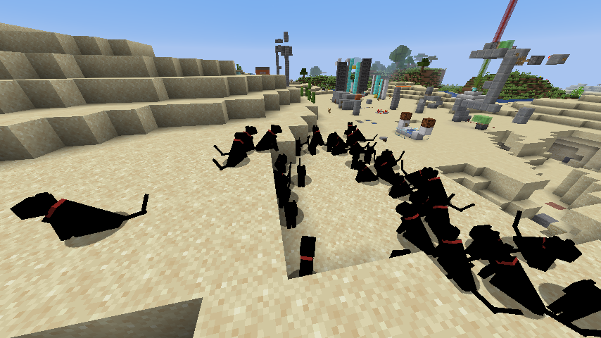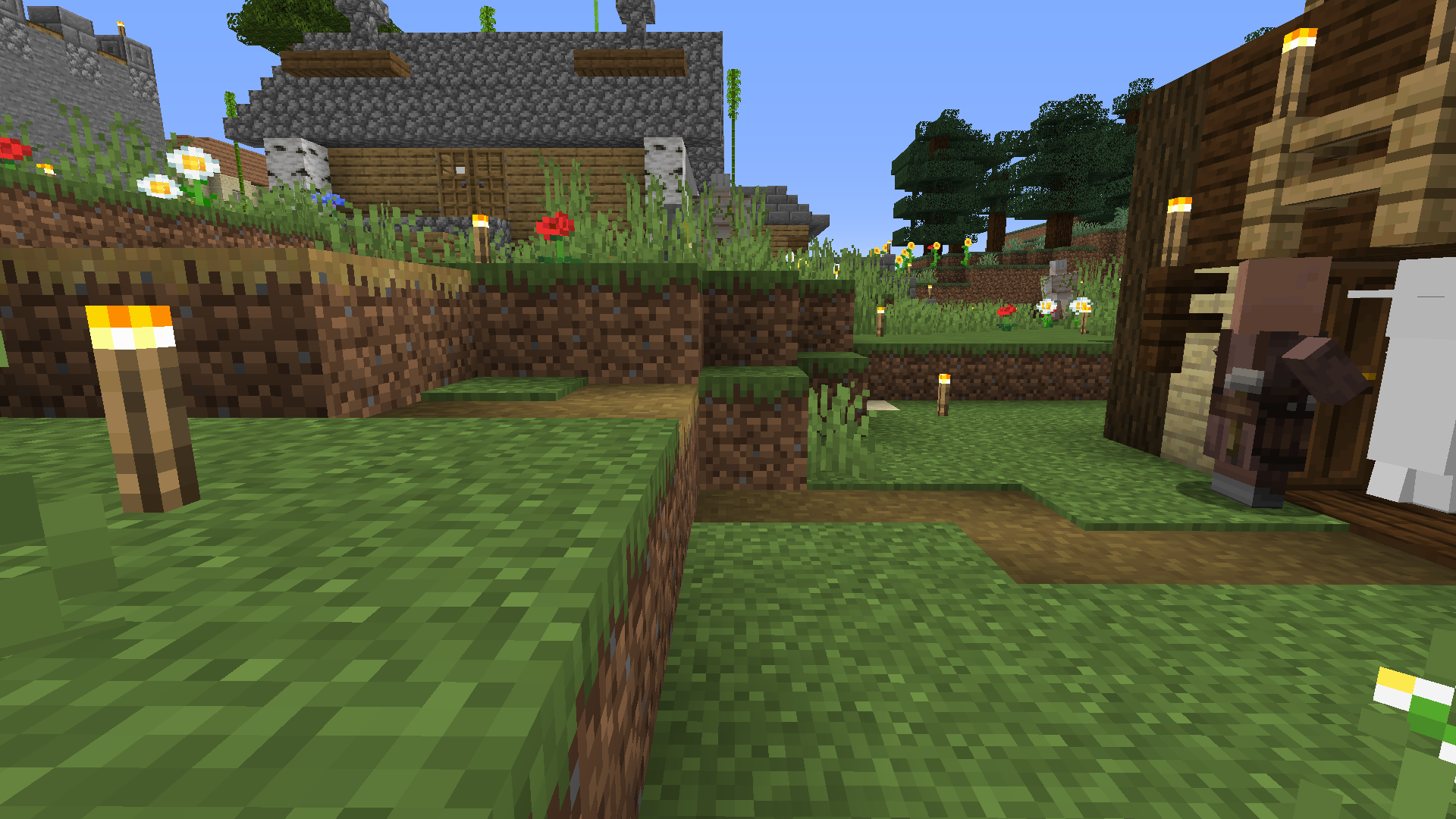 Villagers, zombie villagers and cats occasionally appear completely black or completely white, depending on the angle they're looked at.