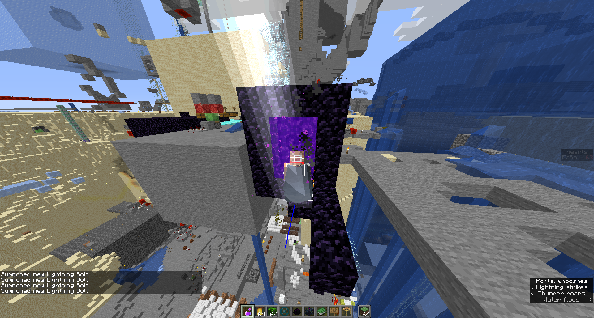 Similar to MC-9553 and MC-69204, but now almost backwards: The middle (darker) part of lightning bolts does not render if looked at through water or Nether portals or if water or a portal is behind it.