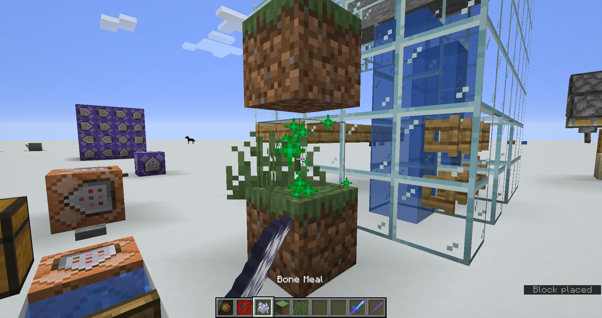 Using bone meal on things causes green star particles to be emitted. However, at high distances from the world's center, these particles lose precision. See comparison in attachments.