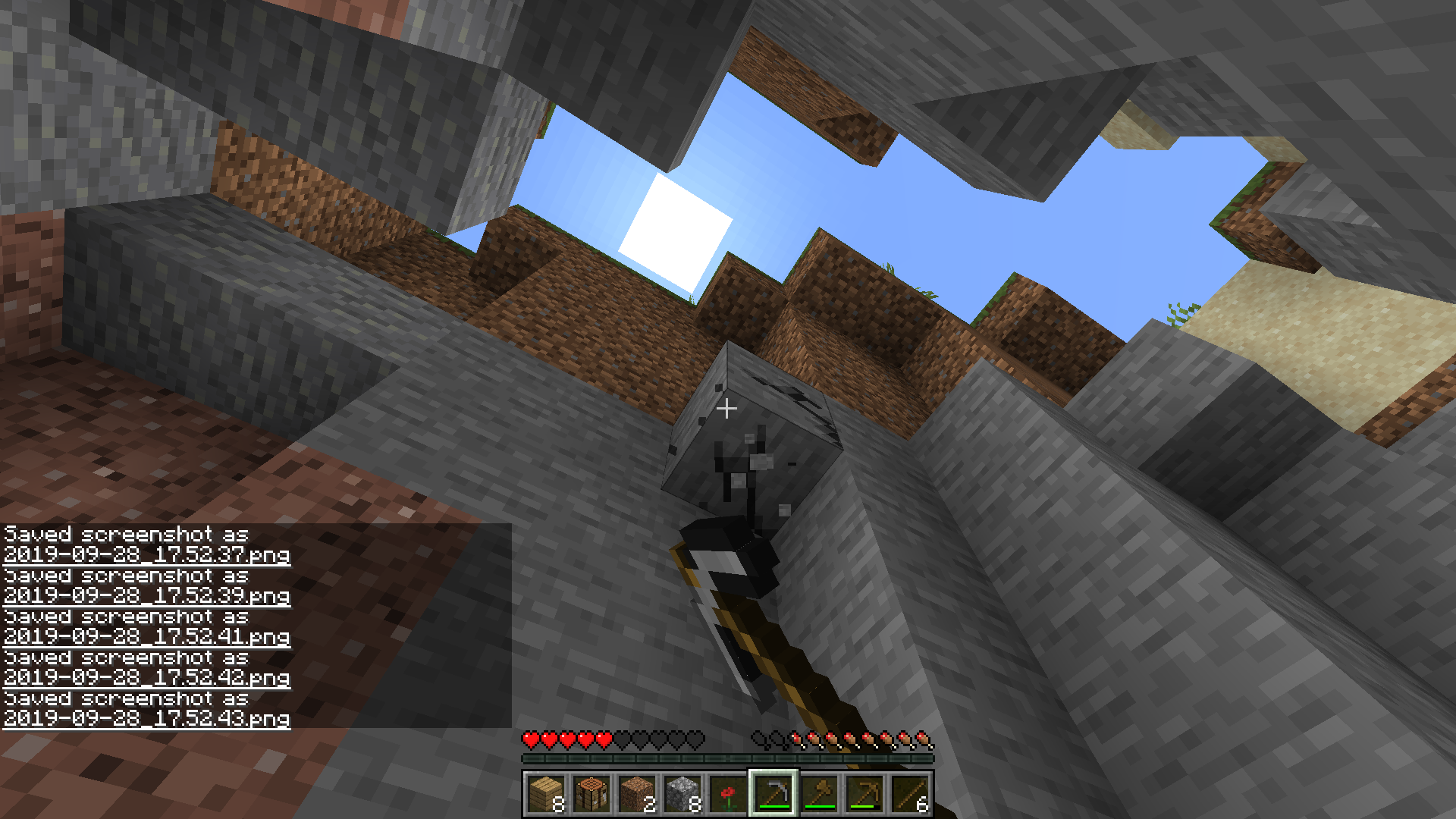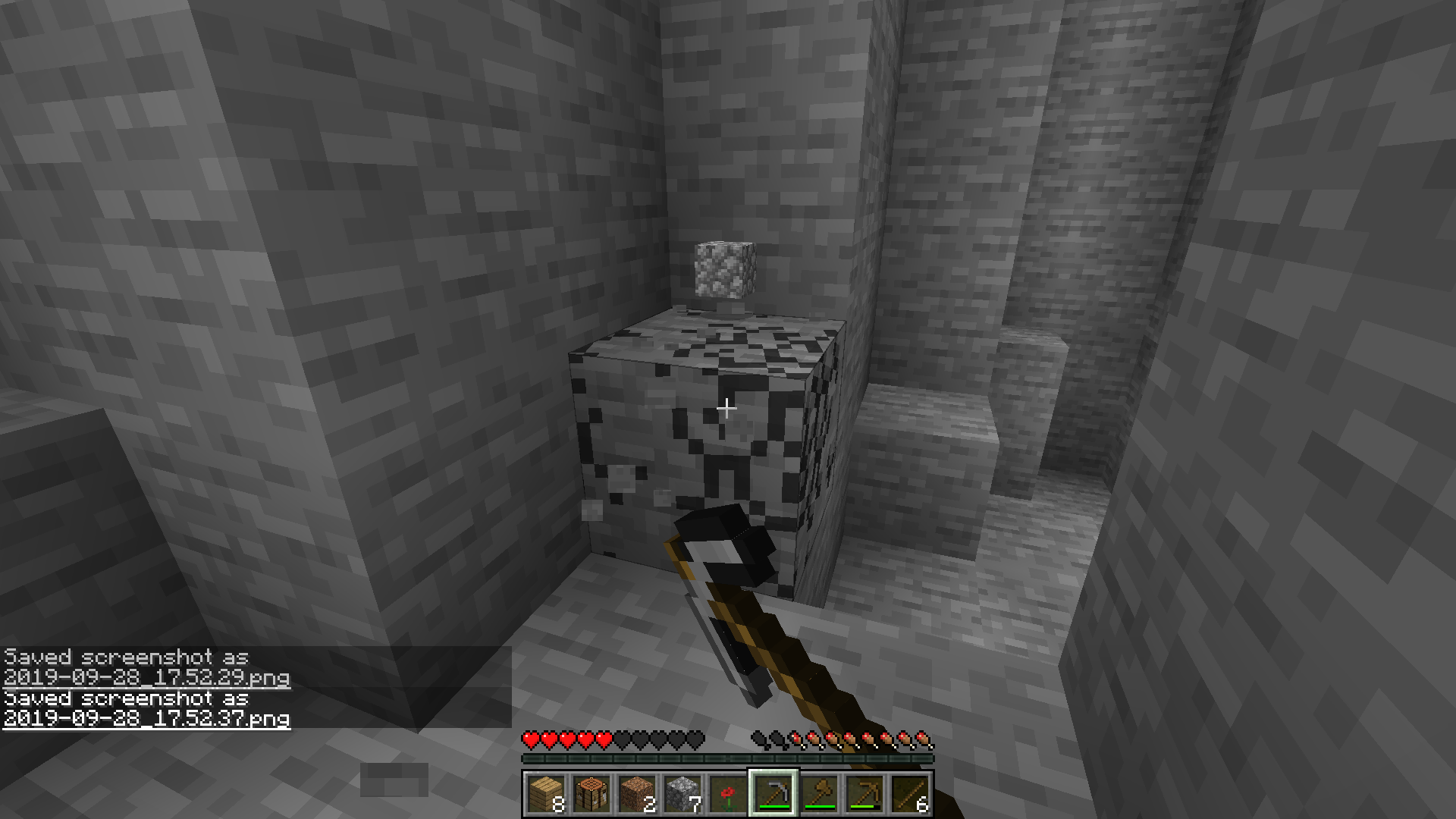 1. Break a block in survival and move side to side while breaking.