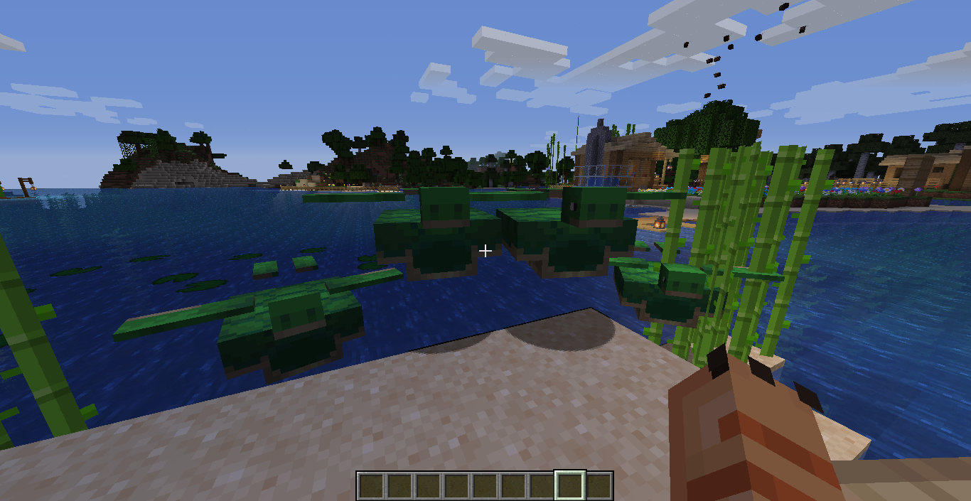 Trees (from a small distance) flash and strobe with lighting glitches, affecting people with photosensitive epilepsy. Also, the turtles look like planes now.