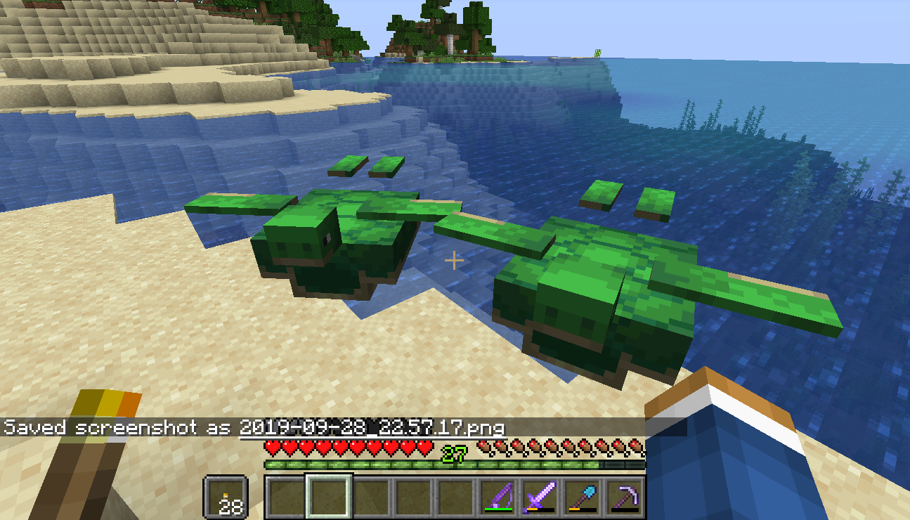 Turtles render with their limbs and head above their shell/body, and float about a block above the ground. The limbs and head move normally despite being out of place, but they are not connected to the turtle properly.