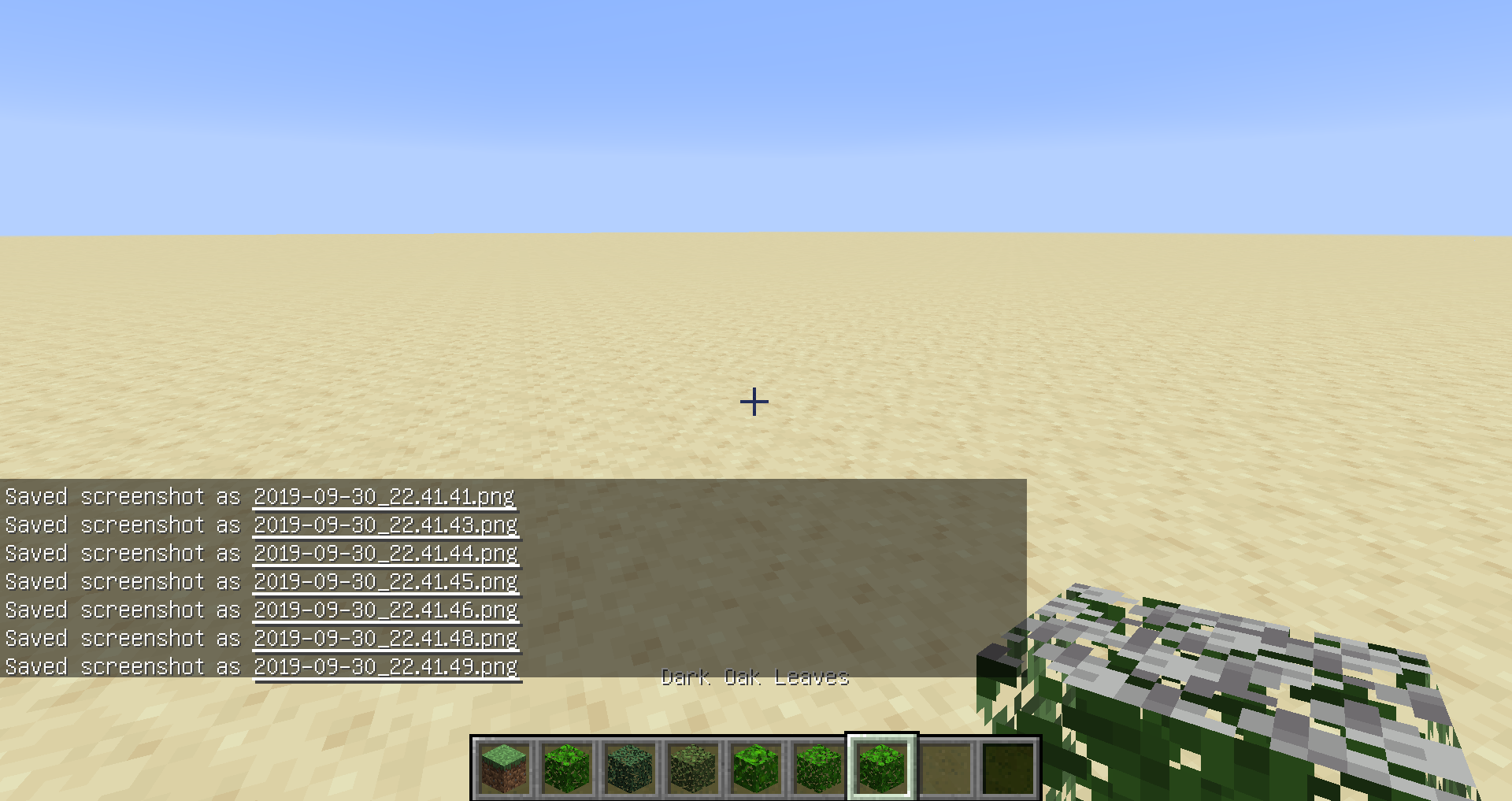 The top of grass and leave blocks use their default gray texture instead of the color of biomes when you are holding them.