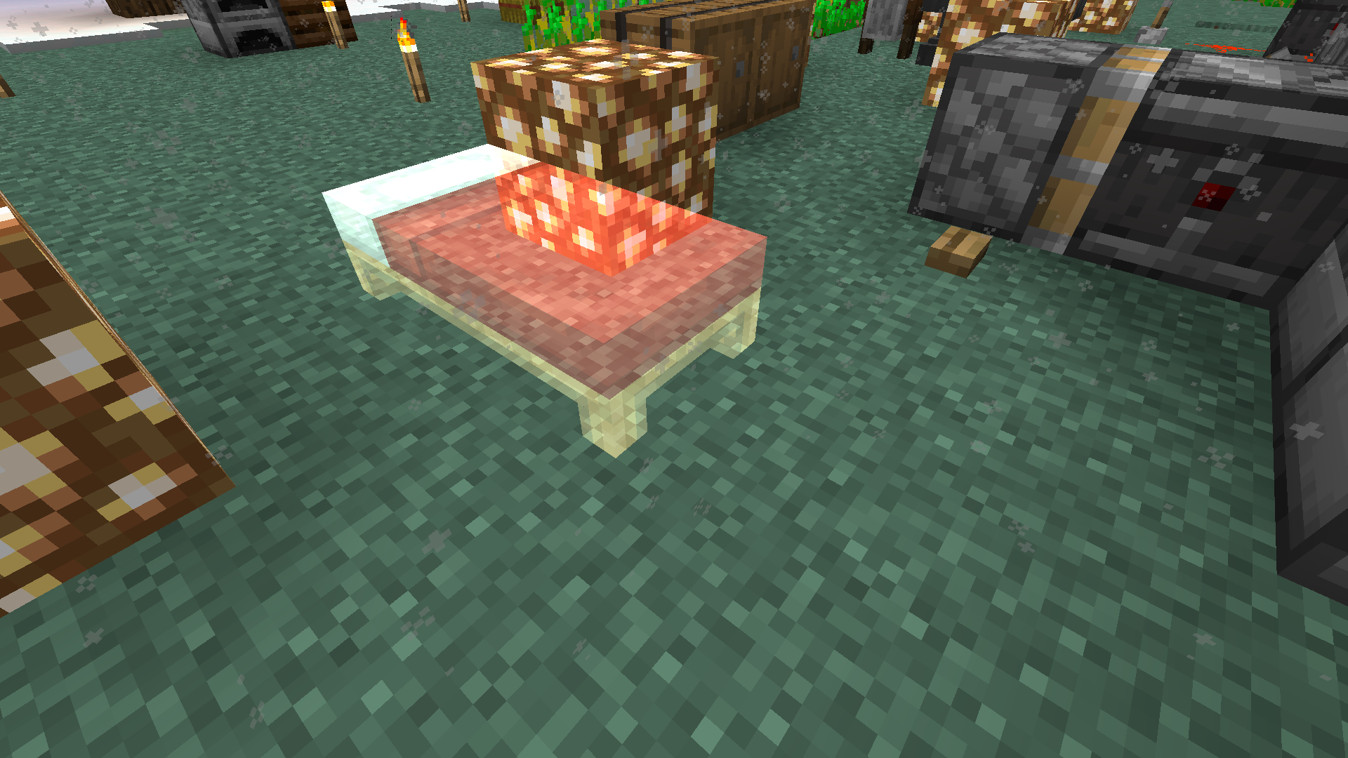 From certain views, the red-sheeted bed looks translucent in the latest snapshot. I have included two other pictures where the beds DO NOT appear translucent to show that it does indeed only appear translucent from certain angles. Is this intended?