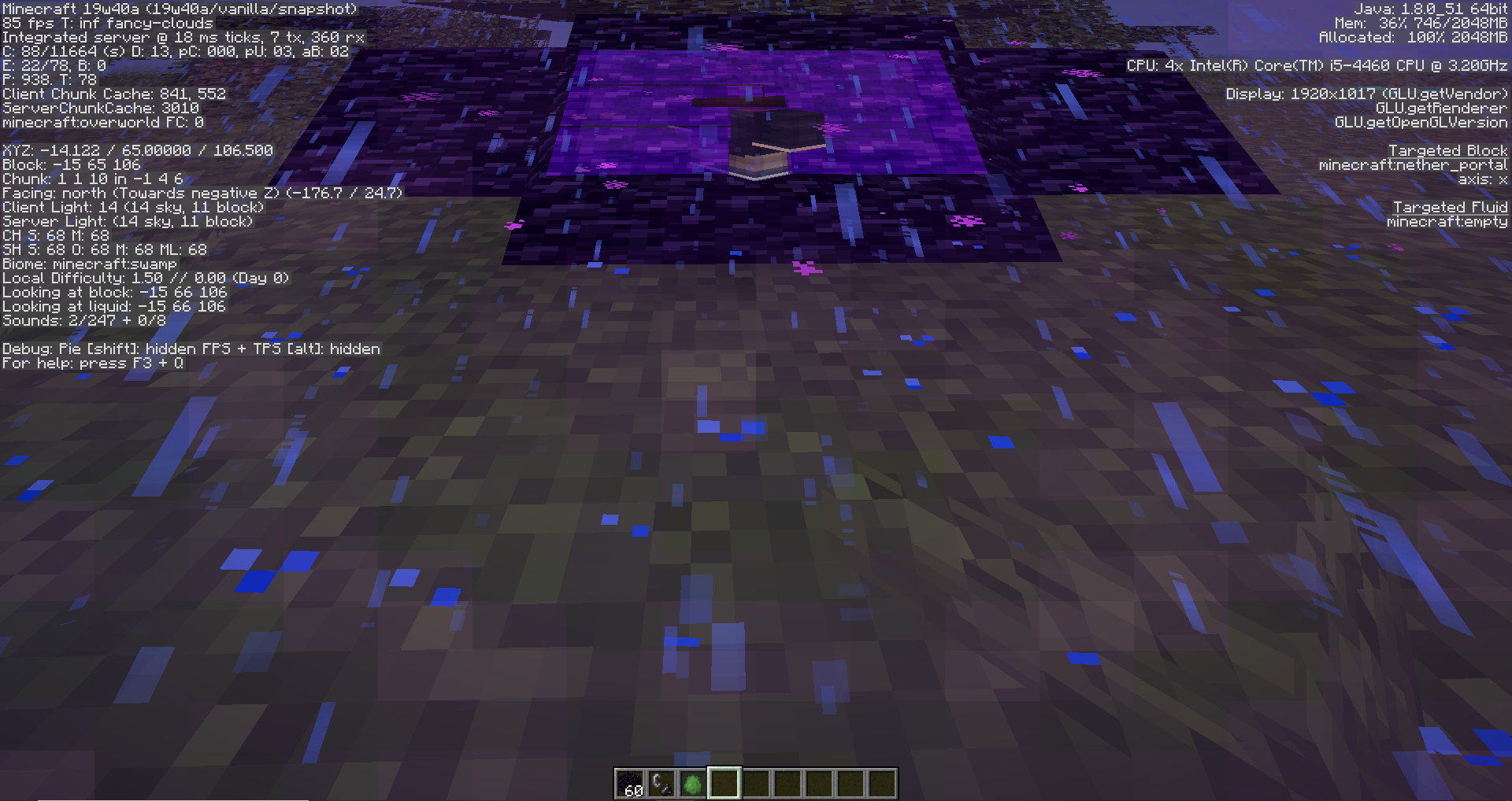 Running into the nether portal sometimes makes the game think its water and will trigger the swimming animation and disorientate your screen. Going through the Nether Portal back to the OVERWORLD and staying still will make a wavey visual glitch until you step out.