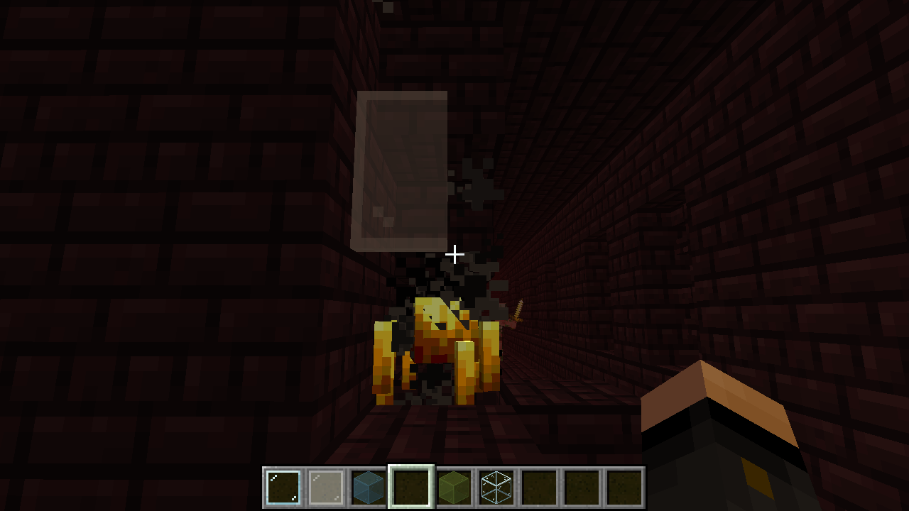 When looking through either of them you can't see the particle. Through the uncoloured Glass and Glass Pane you can see the particles.