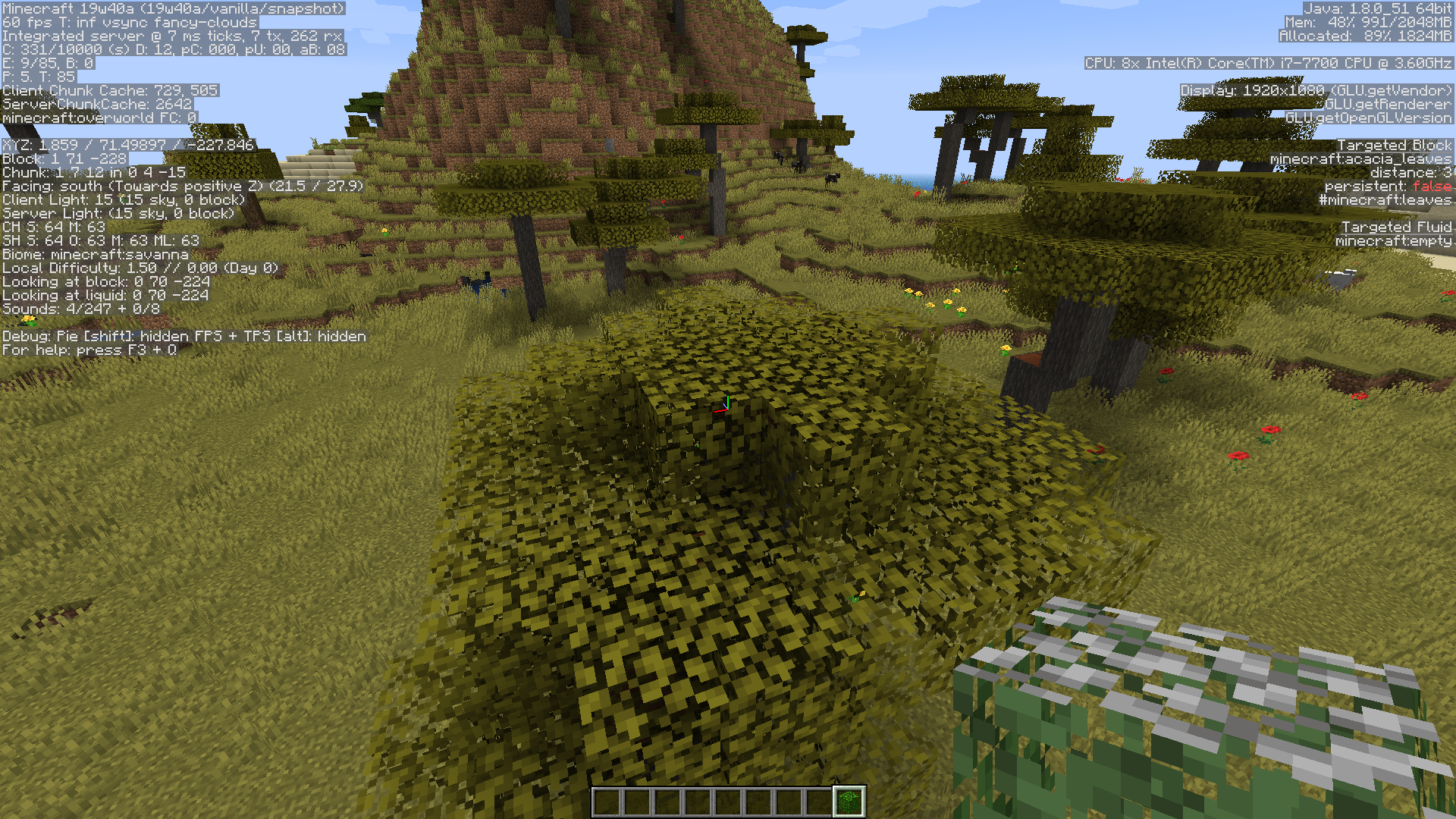 Certain blocks' top-texture is rendered with grayscale when in your hand and in first person.