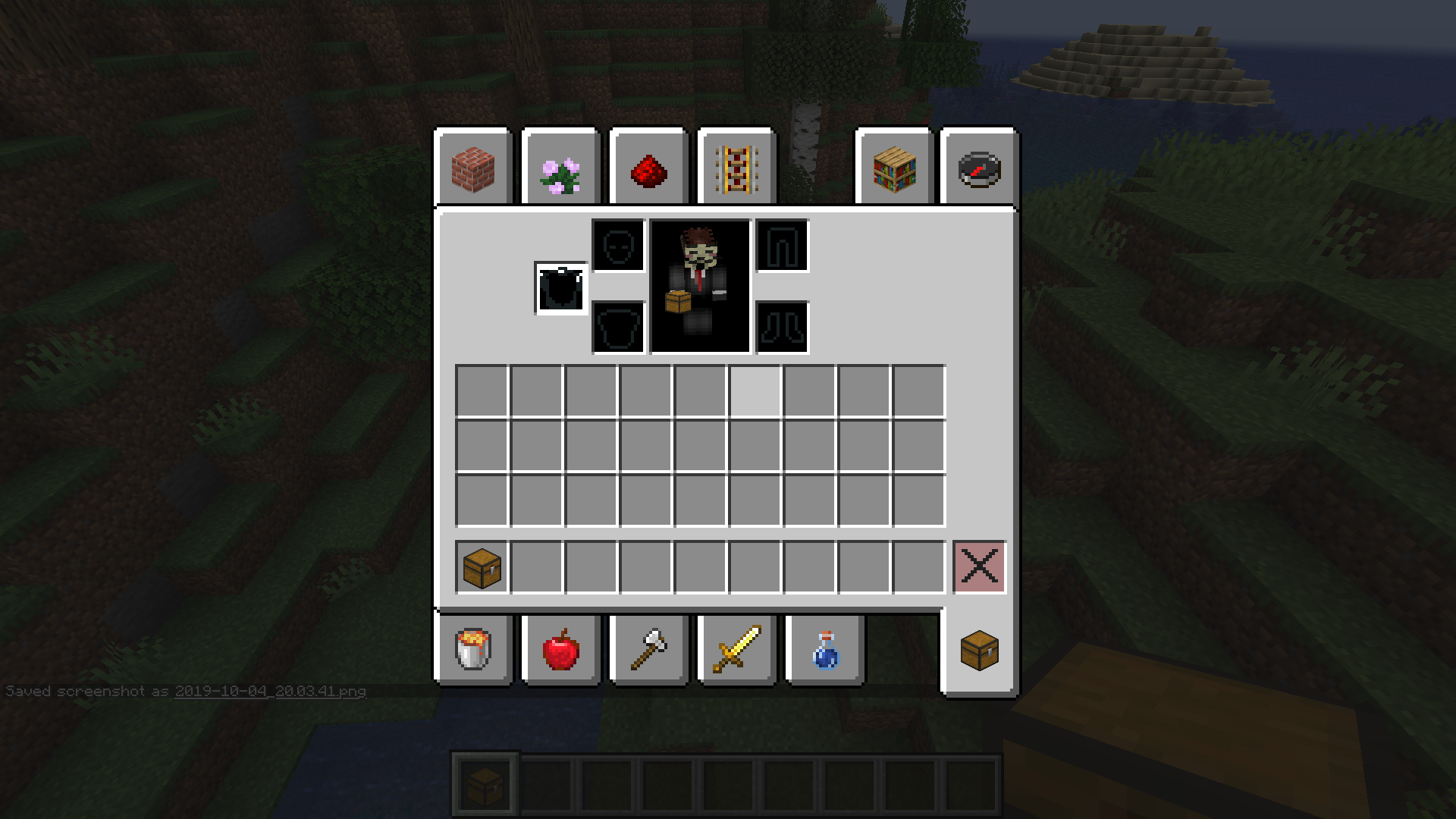 when you put a chest/traped chest/ender chest/shulker box into your hotbar then get out of your inventory then back in you will see a weird bug.