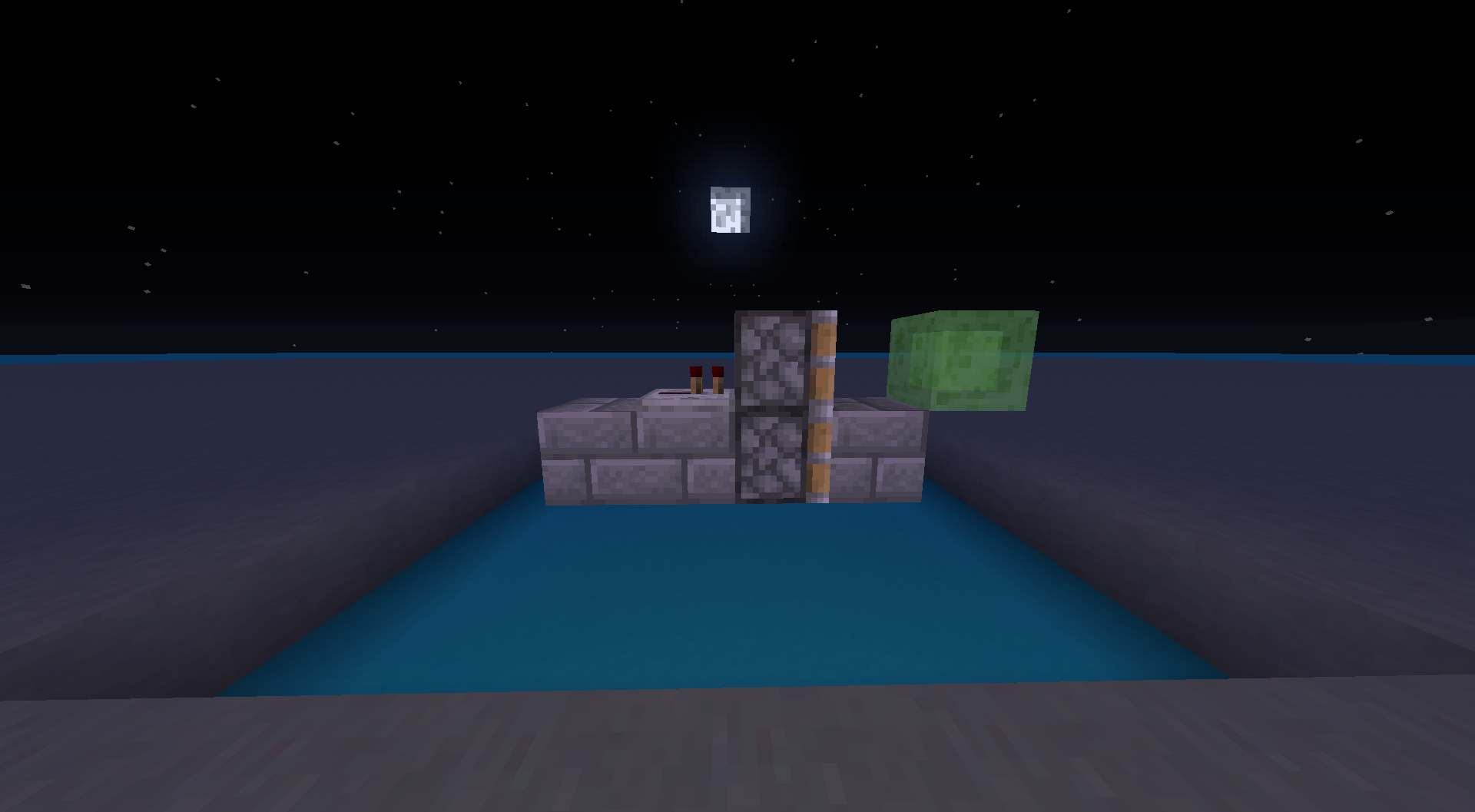 -Place a slime block on the top piston, and any other block on the bottom