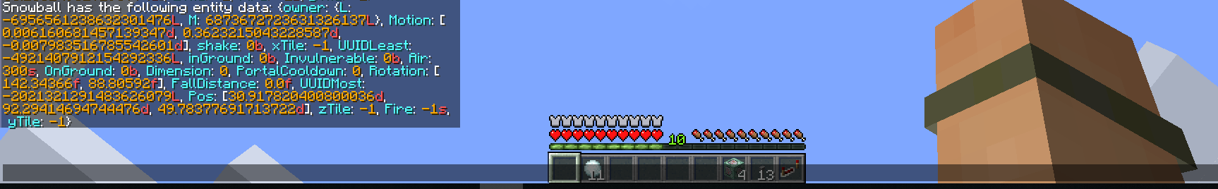 Provided photos show the difference between two snowball entities, which both were created by a renamed snowball "Test2". However, one of them is created while holding multiple items in the slot, and the other while only one item was held before throwing it.