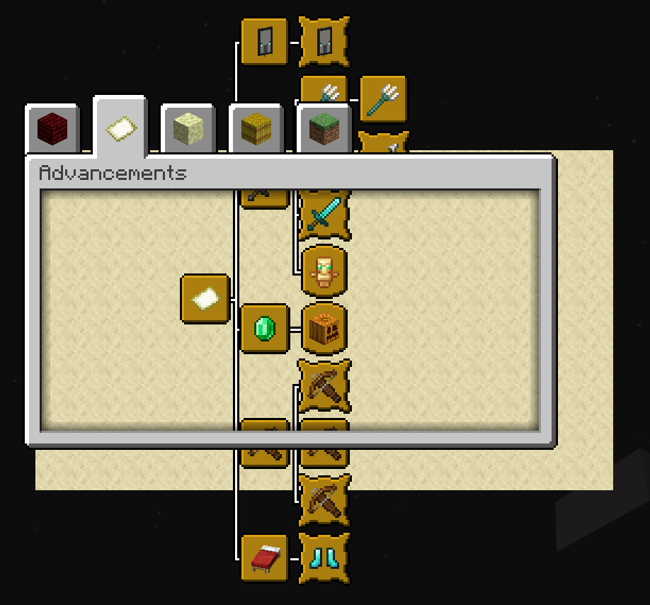 The background of the advancements window and all advancements on it are displayed regardless of whether they fit within the viewport of the GUI. It seems the GUI does not crop and hide the contents anymore where it exceeds the border.
