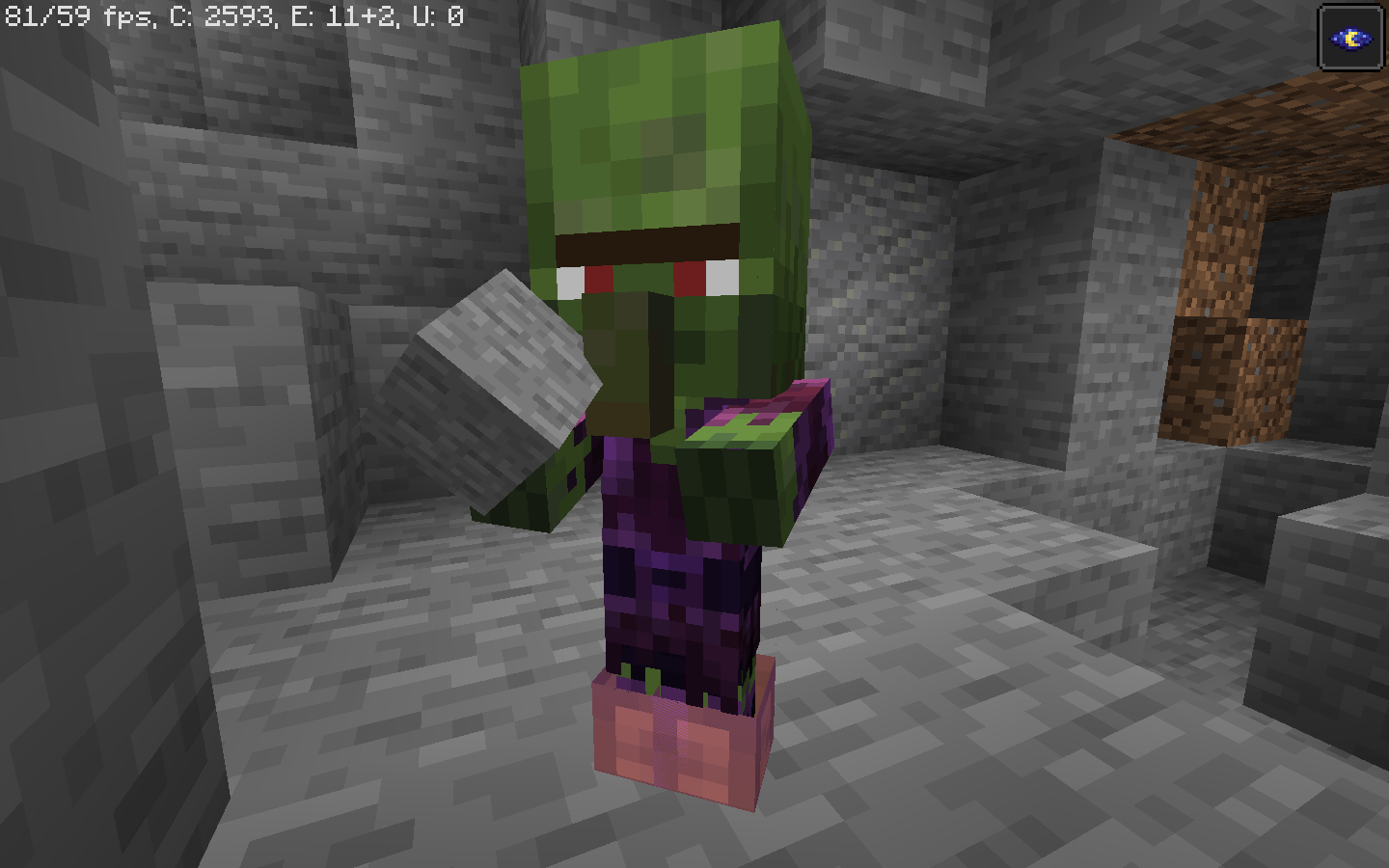 As the title suggests, zombie villagers have a strange purple tint to them when they wear enchanted armor. I believe, that the purple-ness of the enchantment glint is applied to the texture rather than just the armor. I have tested this with the 1.14 default textures, The Programmer art pack, and also one of my own creation separately, so I believe that this isn't a texture pack related issue.
