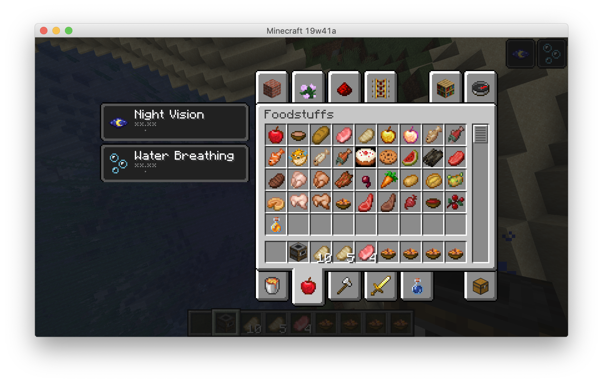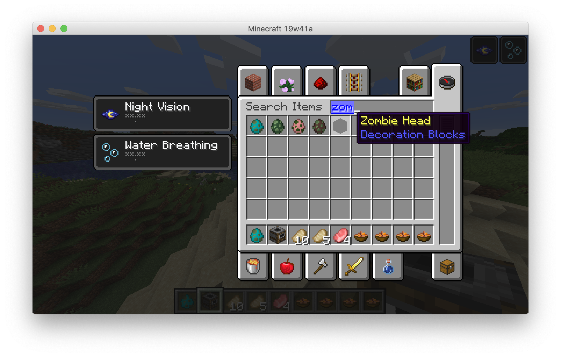 There is a weird black background behind items in the creative inventory like the bell and all types of signs