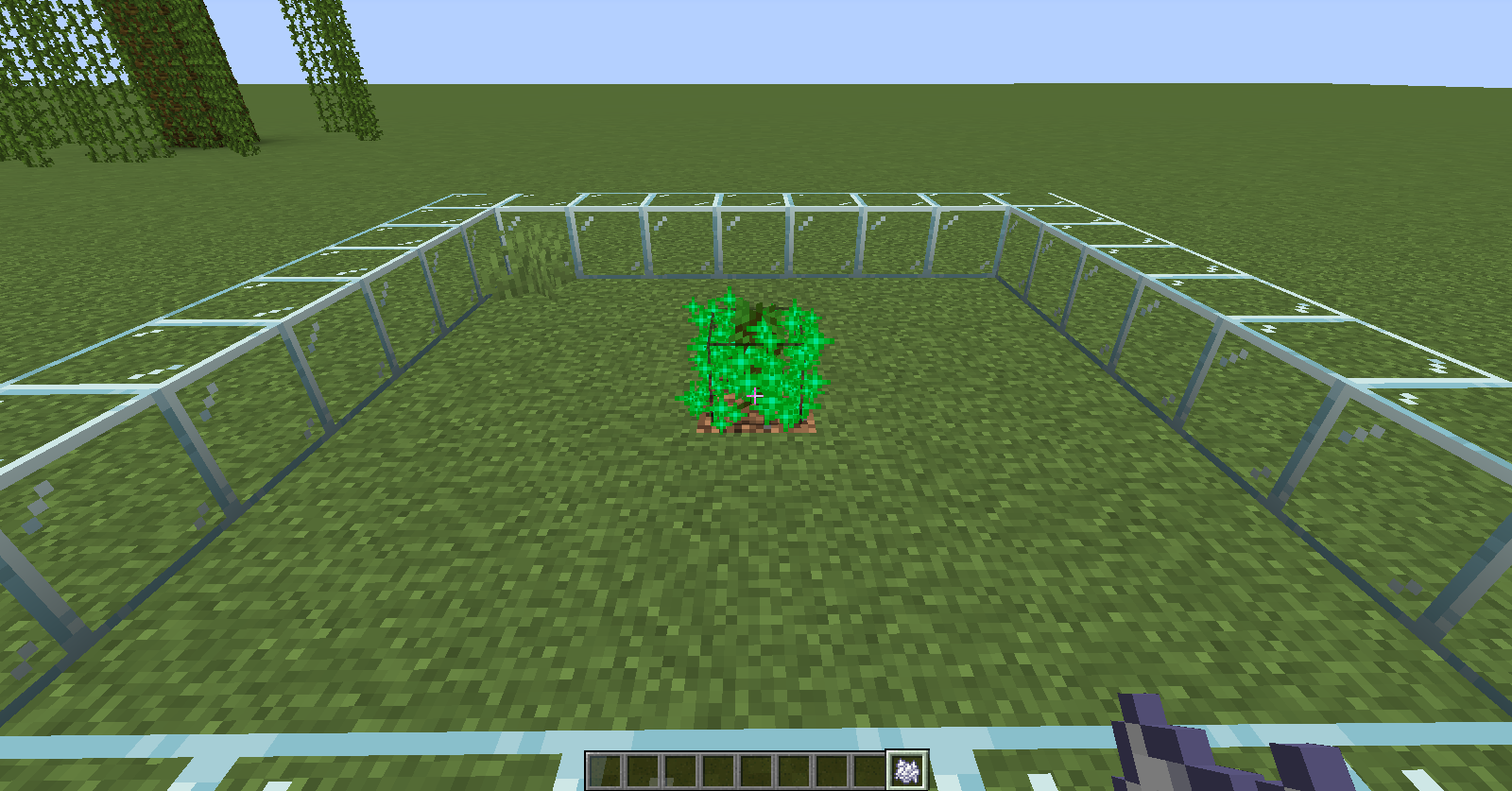 Birch, jungle and oak trees need a 7x7 area of air centered around all the logs that do not have leaves. For example: If a tree wants to grow 6 blocks high, 3 of which are surrounded by leaves, it would need a 7x7x3 area centered on the sapling for it to grow. See the attached screenshot for a visual representation. This means that if there is some grass within a 7x7 area of the sapling it never grows, which is quite annoying. This also breaks most tree farms, since they have a 5x5 chamber. This doesn't apply to acacia, spruce, large oak, large spruce, large jungle and dark oak trees.