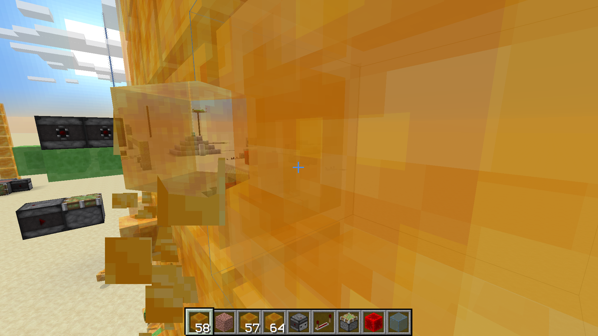 4. you should be able to see the marker behind the honey block structure much more clearly while the items are in front of your face