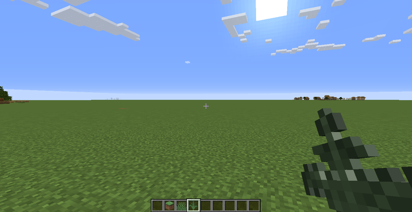 The grass block, grass, tall grass, fern, and large fern appear gray when being held.