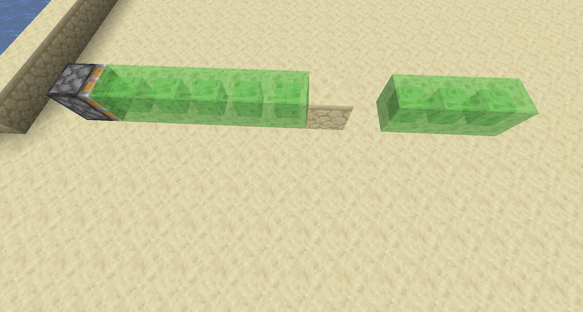 When pulled by a piston a honey block(s) and a slime block(s) with any movable block in between will not join together and be pulled. In theory this should work as the two blocks are both attached to the same movable block, not each other (a video is attached). I apologize for the low fps / lag of the video, my laptop isn't designed for recording. Also, as seen in the video, when you hover over either a slime or honey block the selection box that appears around the block becomes transparent. I also apologize for the lack of video editing.