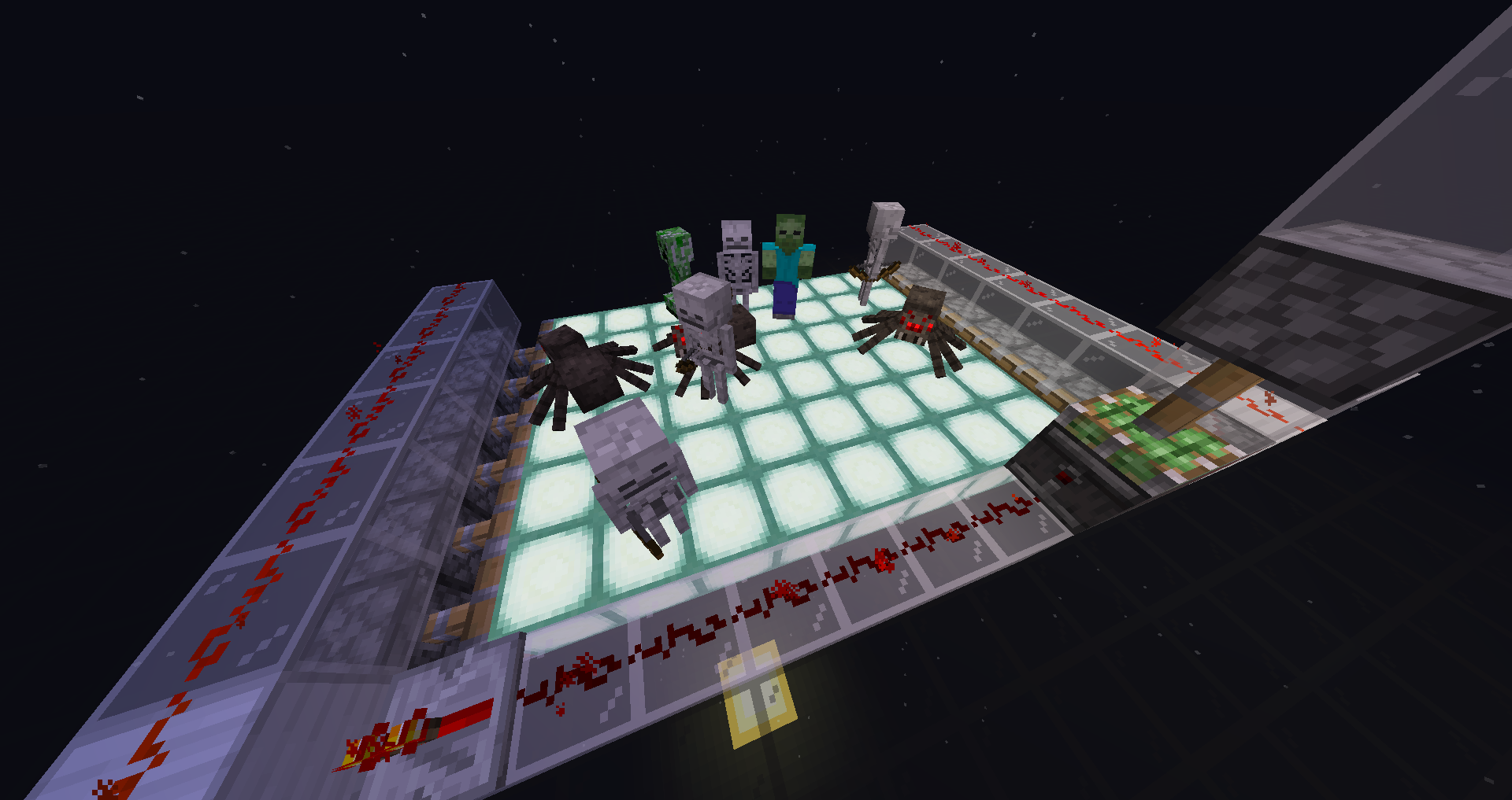 Mobs can spawn on moving blocks, (i.e., blocks pushed by pistons), even if they should not be able to spawn on these blocks.